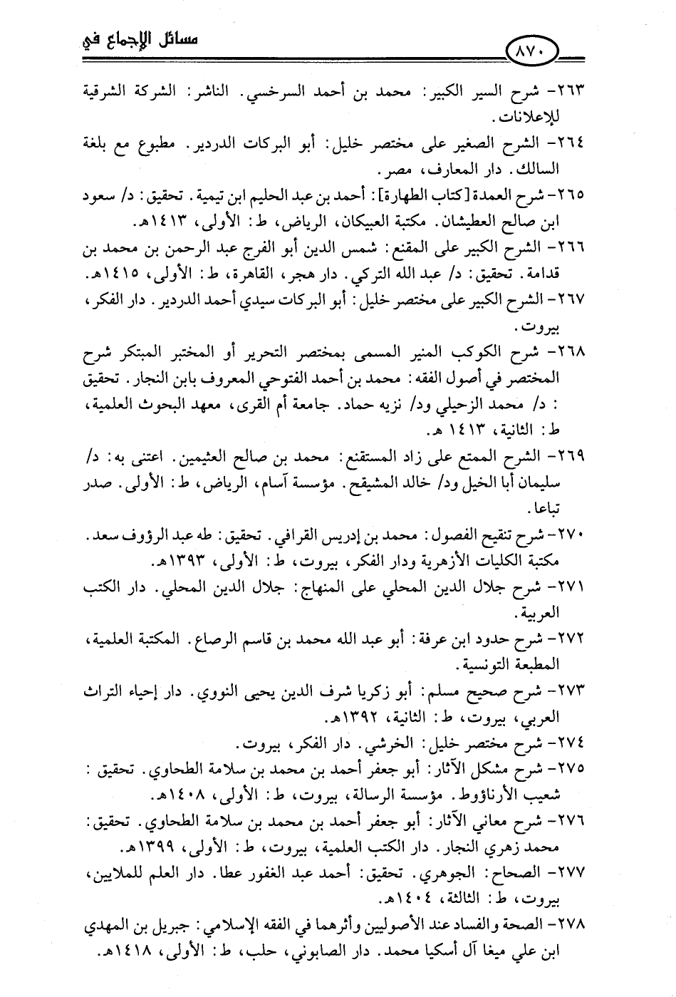 274 - شرح مختصر خليل: الخرشي. دار الفكر، بيروت.