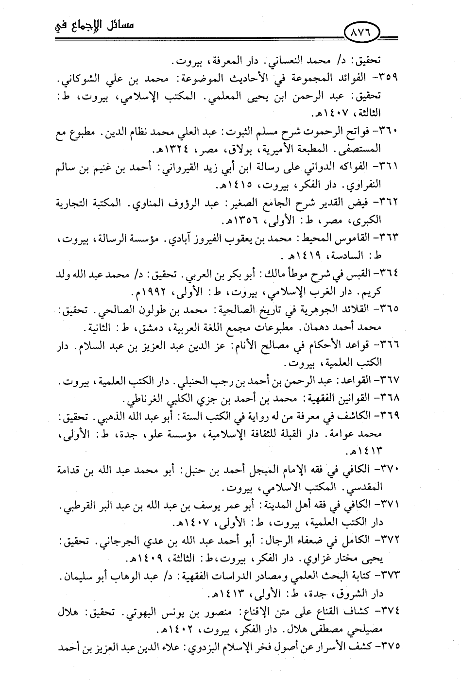 359 - الفوائد المجموعة في الأحاديث الموضوعة: محمد بن علي الشوكاني. تحقيق: عبد الرحمن ابن يحيى المعلمي. المكتب الإسلامي، بيروت، ط: الثالثة، 1407 هـ.