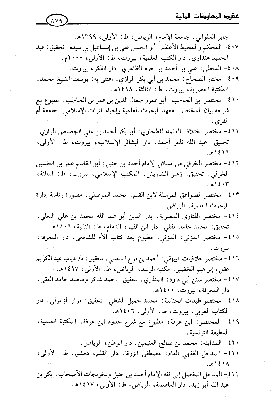 419 - المختصر: ابن عرفة، مطبوع مع شرح حدود ابن عرفة. المكتبة العلمية، المطبعة التونسية.