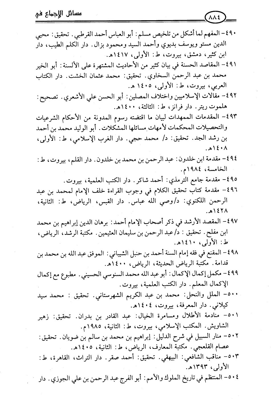 494 - مقدمة ابن خلدون: عبد الرحمن بن محمد بن خلدون. دار القلم، بيروت، ط: الخامسة، 1984 م.