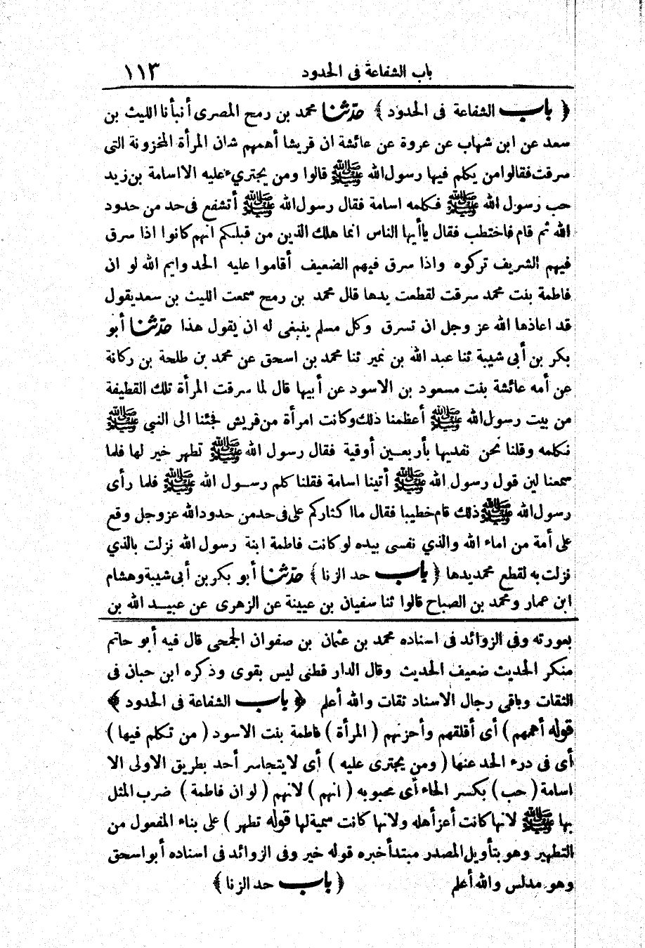 2547 - حَدَّثَنَا مُحَمَّدُ بْنُ رُمْحٍ الْمِصْرِيُّ أَنْبَأَنَا اللَّيْثُ بْنُ سَعْدٍ عَنْ ابْنِ شِهَابٍ عَنْ عُرْوَةَ عَنْ عَائِشَةَ «أَنَّ قُرَيْشًا أَهَمَّهُمْ شَأْنُ الْمَرْأَةِ الْمَخْزُومِيَّةِ الَّتِي سَرَقَتْ فَقَالُوا مَنْ يُكَلِّمُ فِيهَا رَسُولَ اللَّهِ صَلَّى اللَّهُ عَلَيْهِ وَسَلَّمَ قَالُوا وَمَنْ يَجْتَرِئُ عَلَيْهِ إِلَّا أُسَامَةُ بْنُ زَيْدٍ حِبُّ رَسُولِ اللَّهِ فَكَلَّمَهُ أُسَامَةُ فَقَالَ رَسُولُ اللَّهِ صَلَّى اللَّهُ عَلَيْهِ وَسَلَّمَ أَتَشْفَعُ فِي حَدٍّ مِنْ حُدُودِ اللَّهِ ثُمَّ قَامَ فَاخْتَطَبَ فَقَالَ يَا أَيُّهَا النَّاسُ إِنَّمَا هَلَكَ الَّذِينَ مِنْ قَبْلِكُمْ أَنَّهُمْ كَانُوا إِذَا سَرَقَ فِيهِمْ الشَّرِيفُ تَرَكُوهُ وَإِذَا سَرَقَ فِيهِمْ الضَّعِيفُ أَقَامُوا عَلَيْهِ الْحَدَّ وَايْمُ اللَّهِ لَوْ أَنَّ فَاطِمَةَ بِنْتَ مُحَمَّدٍ سَرَقَتْ لَقَطَعْتُ يَدَهَا» قَالَ مُحَمَّدُ بْنُ رُمْحٍ سَمِعْتُ اللَّيْثَ بْنَ سَعْدٍ يَقُولُ قَدْ أَعَاذَهَا اللَّهُ عَزَّ وَجَلَّ أَنْ تَسْرِقَ وَكُلُّ مُسْلِمٍ يَنْبَغِي لَهُ أَنْ يَقُولَ هَذَا