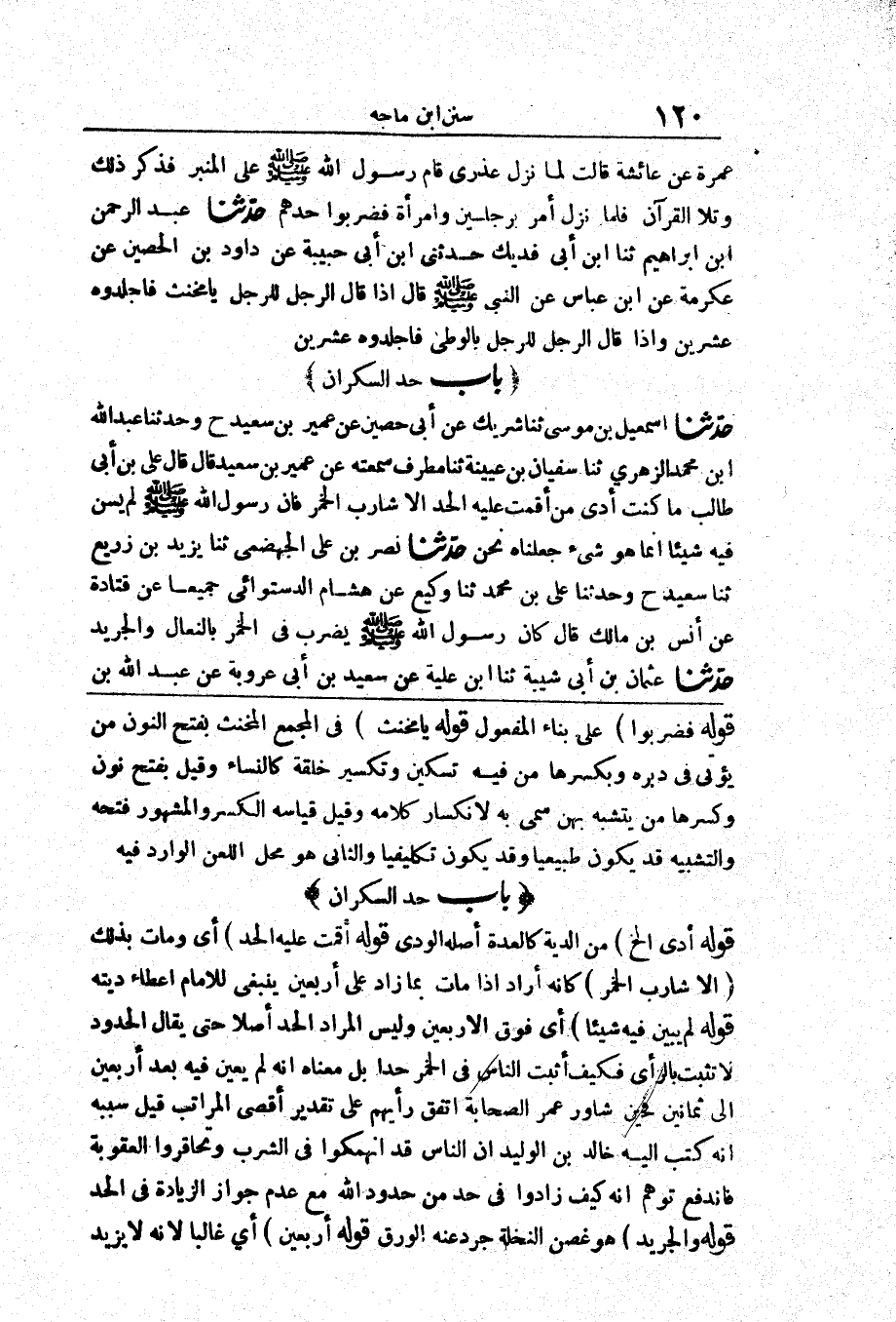 2571 - حَدَّثَنَا عُثْمَانُ بْنُ أَبِي شَيْبَةَ حَدَّثَنَا ابْنُ عُلَيَّةَ عَنْ سَعِيدِ بْنِ أَبِي عَرُوبَةَ عَنْ عَبْدِ اللَّهِ بْنِ الدَّانَاجِ سَمِعْتُ حُضَيْنَ بْنَ الْمُنْذِرِ الرَّقَاشِيَّ ح وَحَدَّثَنَا مُحَمَّدُ بْنُ عَبْدِ الْمَلِكِ بْنِ أَبِي الشَّوَارِبِ حَدَّثَنَا عَبْدُ الْعَزِيزِ بْنُ الْمُخْتَارِ حَدَّثَنَا عَبْدُ اللَّهِ بْنُ فَيْرُوزَ الدَّانَاجُ قَالَ حَدَّثَنِي حُضَيْنُ بْنُ الْمُنْذِرِ قَالَ «لَمَّا جِيءَ بِالْوَلِيدِ بْنِ عُقْبَةَ إِلَى عُثْمَانَ قَدْ شَهِدُوا عَلَيْهِ قَالَ لِعَلِيٍّ دُونَكَ ابْنَ عَمِّكَ فَأَقِمْ عَلَيْهِ الْحَدَّ فَجَلَدَهُ عَلِيٌّ وَقَالَ جَلَدَ رَسُولُ اللَّهِ صَلَّى اللَّهُ عَلَيْهِ وَسَلَّمَ أَرْبَعِينَ وَجَلَدَ أَبُو بَكْرٍ أَرْبَعِينَ وَجَلَدَ عُمَرُ ثَمَانِينَ وَكُلٌّ سُنَّةٌ»