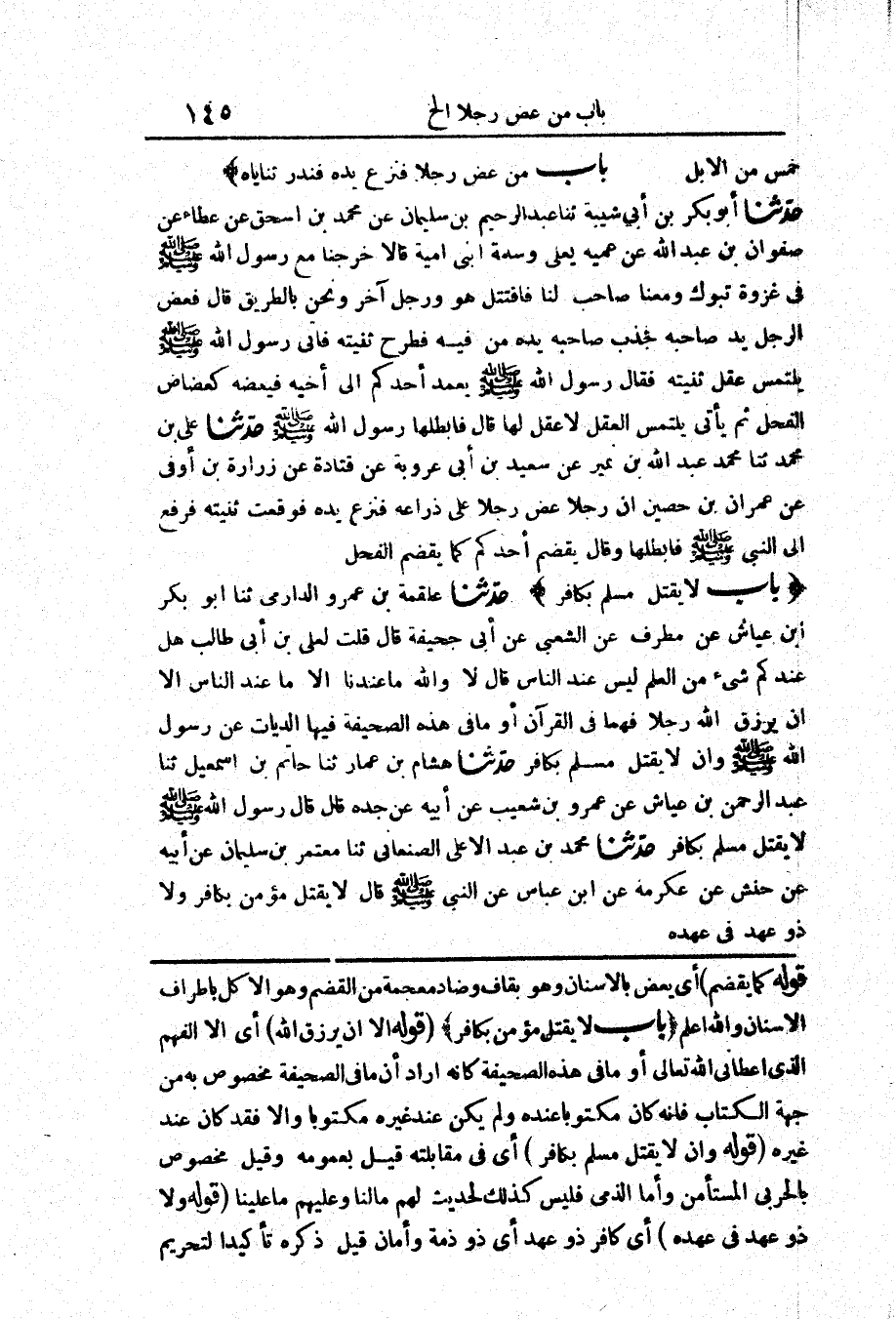 2658 - حَدَّثَنَا عَلْقَمَةُ بْنُ عَمْرٍو الدَّارِمِيُّ حَدَّثَنَا أَبُو بَكْرِ بْنُ عَيَّاشٍ عَنْ مُطَرِّفٍ عَنْ الشَّعْبِيِّ عَنْ أَبِي جُحَيْفَةَ قَالَ «قُلْتُ لِعَلِيِّ بْنِ أَبِي طَالِبٍ هَلْ عِنْدَكُمْ شَيْءٌ مِنْ الْعِلْمِ لَيْسَ عِنْدَ النَّاسِ قَالَ لَا وَاللَّهِ مَا عِنْدَنَا إِلَّا مَا عِنْدَ النَّاسِ إِلَّا أَنْ يَرْزُقَ اللَّهُ رَجُلًا فَهْمًا فِي الْقُرْآنِ أَوْ مَا فِي هَذِهِ الصَّحِيفَةِ فِيهَا الدِّيَاتُ عَنْ رَسُولِ اللَّهِ صَلَّى اللَّهُ عَلَيْهِ وَسَلَّمَ وَأَنْ لَا يُقْتَلَ مُسْلِمٌ بِكَافِرٍ»