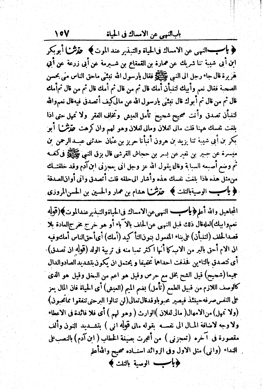 [بَاب النَّهْيِ عَنْ الْإِمْسَاكِ فِي الْحَيَاةِ وَالتَّبْذِيرِ عِنْدَ الْمَوْتِ]