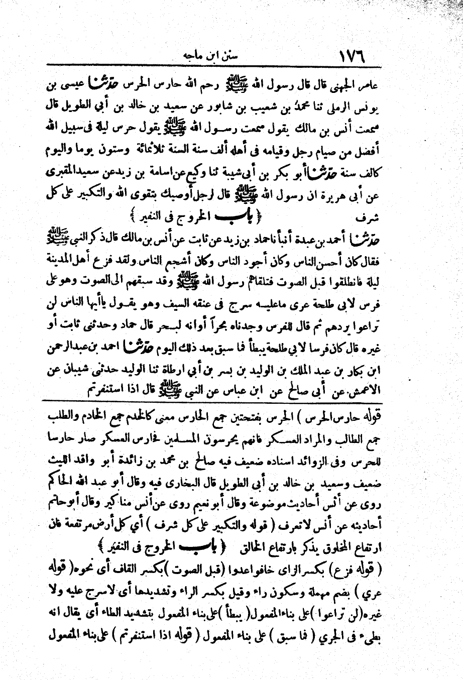 قَوْلُهُ: (حَارِسَ الْحَرَسِ) الْحَرَسُ - بِفَتْحَتَيْنِ - جَمْعُ الْحَارِسِ مَعْنًى كَالْخَدَمِ جَمْعِ الْخَادِمِ وَالطَّلَبِ جَمْعِ الطَّالِبِ، وَالْمُرَادُ الْعَسْكَرُ فَإِنَّهُمْ يَحْرُسُونَ الْمُسْلِمِينَ فَحَارِسُ الْعَسْكَرِ صَارَ حَارِسًا لِلْحَرَسِ، وَفِي الزَّوَائِدِ إِسْنَادُهُ ضَعِيفٌ فِيهِ صَالِحُ بْنُ مُحَمَّدِ بْنِ زَائِدَةَ أَبُو وَاقِدٍ اللَّيْثِيُّ ضَعِيفٌ وَسَعِيدُ بْنُ خَالِدِ بْنِ أَبِي الطَّوِيلِ قَالَ الْبُخَارِيُّ فِيهِ، وَقَالَ أَبُو عَبْدِ اللَّهِ الْحَاكِمُ رَوَى عَنْ أَنَسٍ أَحَادِيثَ مَوْضُوعَةً، وَقَالَ أَبُو نُعَيْمٍ: رَوَى عَنْ أَنَسٍ مَنَاكِيرَ، وَقَالَ أَبُو حَاتِمٍ: أَحَادِيثُهُ عَنْ أَنَسٍ لَا تُعْرَفُ.