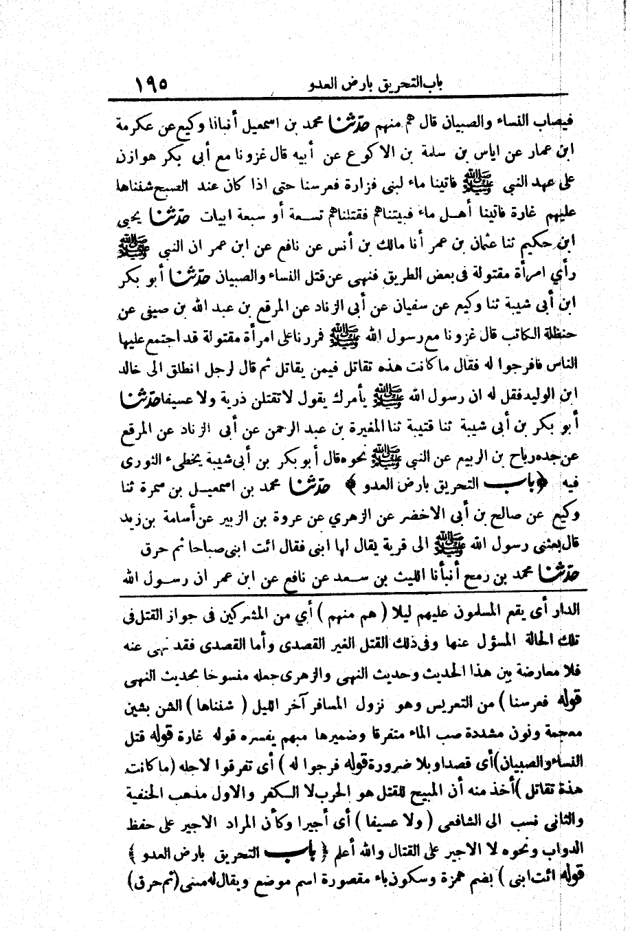 قَوْلُهُ: (فَعَرَّسْنَا) مِنَ التَّعْرِيسِ وَهُوَ نُزُولُ الْمُسَافِرِ آخِرَ اللَّيْلِ (شَنَنَّاهَا) الشَّنُّ بِشِينٍ مُعْجَمَةٍ وَنُونٍ مُشَدَّدَةٍ صَبُّ الْمَاءِ مُتَفَرِّقًا وَضَمِيرُهَا مُبْهَمٌ يُفَسِّرُهُ قَوْلُهُ: غَارَةً.