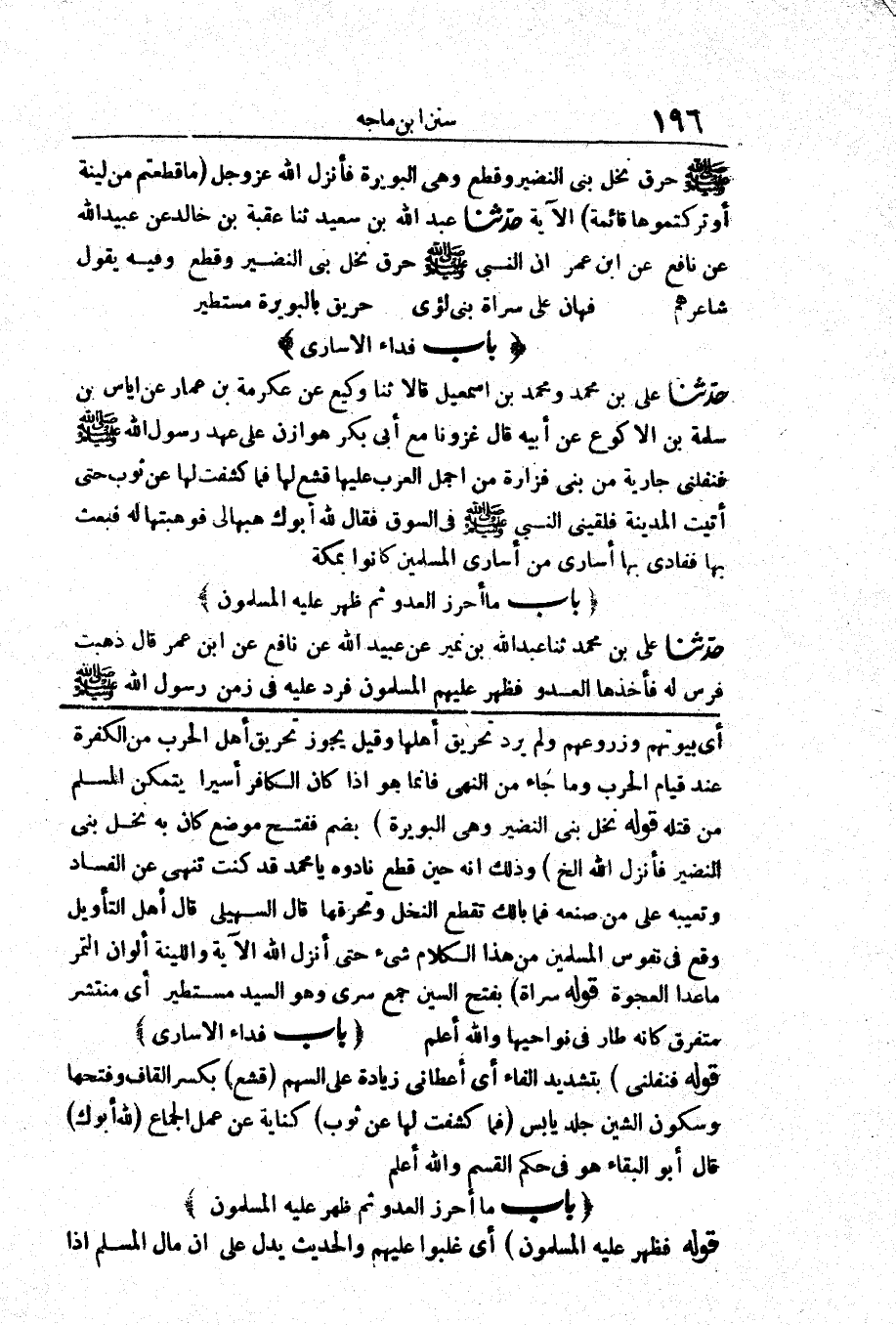 2845 - حَدَّثَنَا عَبْدُ اللَّهِ بْنُ سَعِيدٍ حَدَّثَنَا عُقْبَةُ بْنُ خَالِدٍ عَنْ عُبَيْدِ اللَّهِ عَنْ نَافِعٍ عَنْ ابْنِ عُمَرَ «أَنَّ النَّبِيَّ صَلَّى اللَّهُ عَلَيْهِ وَسَلَّمَ حَرَّقَ نَخْلَ بَنِي النَّضِيرِ وَقَطَعَ وَفِيهِ يَقُولُ شَاعِرُهُمْ