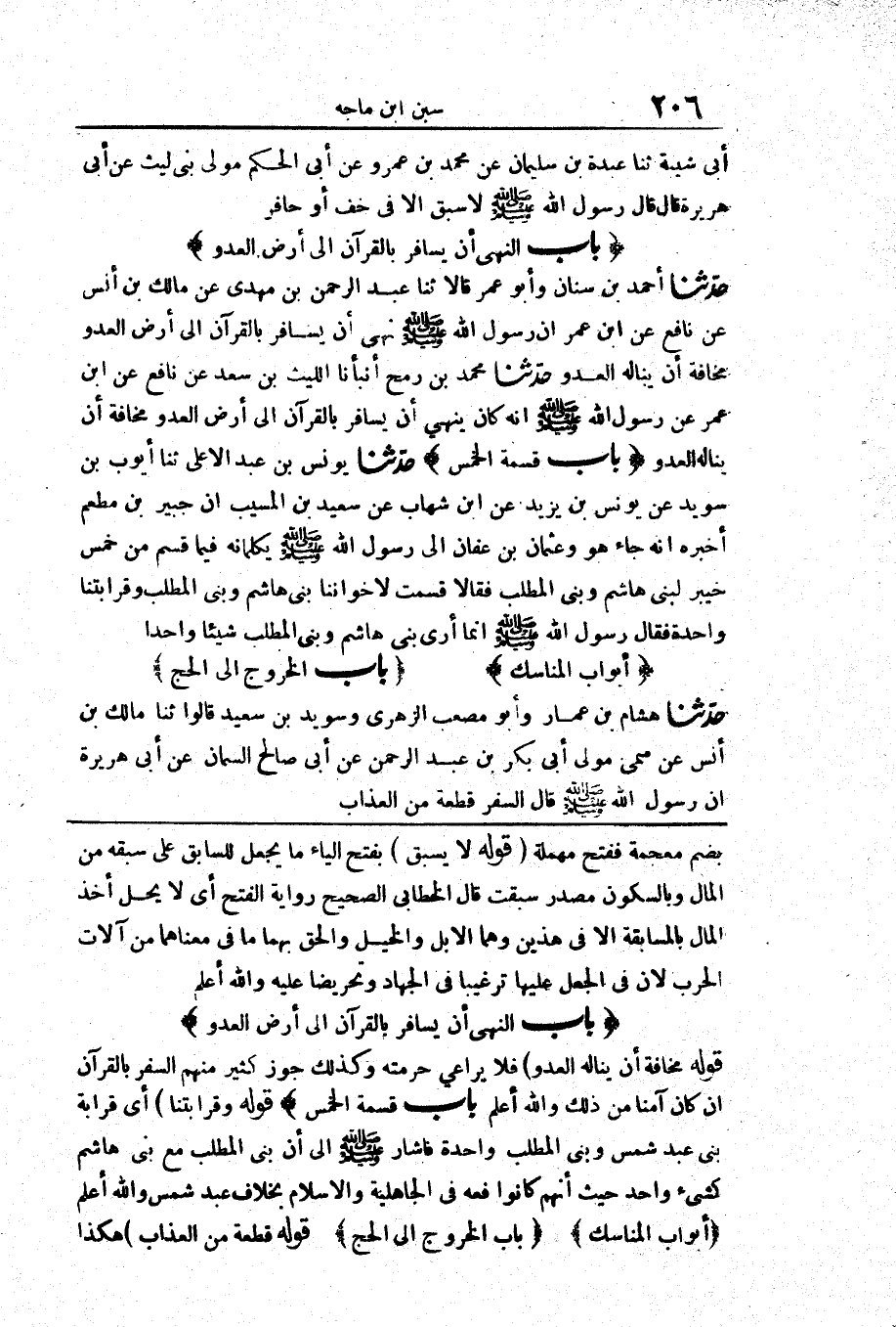 2880 - حَدَّثَنَا مُحَمَّدُ بْنُ رُمْحٍ أَنْبَأَنَا اللَّيْثُ بْنُ سَعْدٍ عَنْ نَافِعٍ عَنْ ابْنِ عُمَرَ «عَنْ رَسُولِ اللَّهِ صَلَّى اللَّهُ عَلَيْهِ وَسَلَّمَ أَنَّهُ كَانَ يَنْهَى أَنْ يُسَافَرَ بِالْقُرْآنِ إِلَى أَرْضِ الْعَدُوِّ مَخَافَةَ أَنْ يَنَالَهُ الْعَدُوُّ»