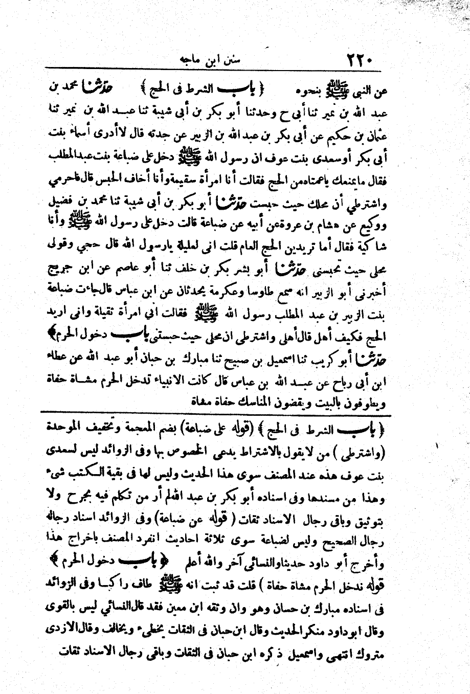 قَوْلُهُ: (عَلَى ضُبَاعَةَ) بِضَمِّ الْمُعْجَمَةِ وَتَخْفِيفِ الْمُوَحَّدَةِ (وَاشْتَرِطِي) مَنْ لَا يَقُولُ بِالِاشْتِرَاطِ يَدَّعِي الْخُصُوصَ بِهَا، وَفِي الزَّوَائِدِ لَيْسَ لِسُعْدَى بِنْتِ عَوْفٍ هَذِهِ عِنْدَ الْمُصَنِّفِ سِوَى هَذَا الْحَدِيثِ، وَلَيْسَ لَهَا فِي بَقِيَّةِ الْكُتُبِ شَيْءٌ، وَهَذَا مِنْ مُسْنَدِهَا، وَفِي إِسْنَادِهِ أَبُو بِكْرِ بْنُ عَبْدِ اللَّهِ لَمْ أَرَ مَنْ تَكَلَّمَ فِيهِ بِجَرْحٍ وَلَا بِتَوْثِيقٍ وَبَاقِي رِجَالِ الْإِسْنَادِ ثِقَاتٌ.