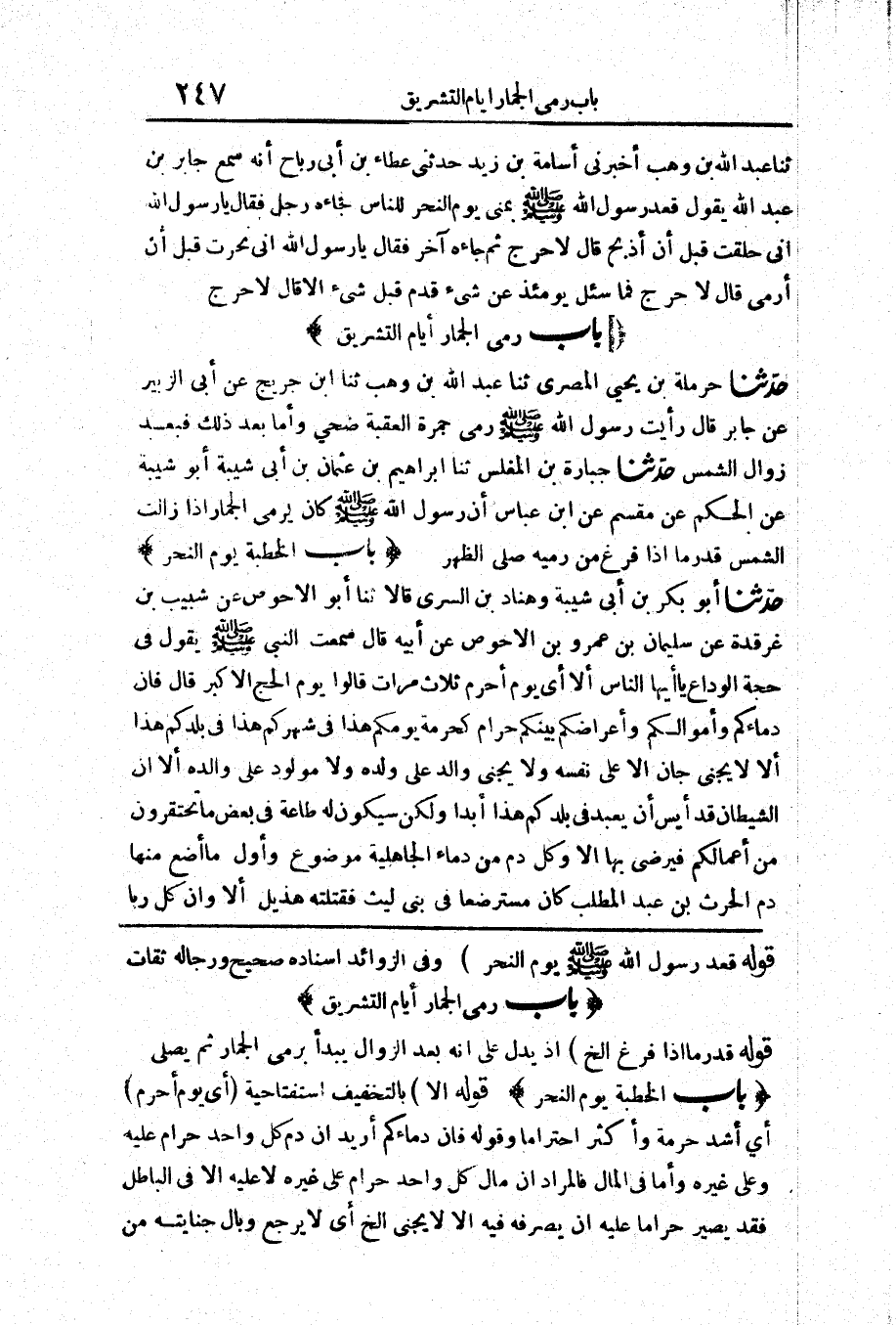 قَوْلُهُ: (قَعَدَ رَسُولُ اللَّهِ - صَلَّى اللَّهُ عَلَيْهِ وَسَلَّمَ - يَوْمَ النَّحْرِ) وَفِي الزَّوَائِدِ: إِسْنَادُهُ صَحِيحٌ وَرِجَالُهُ ثِقَاتٌ.