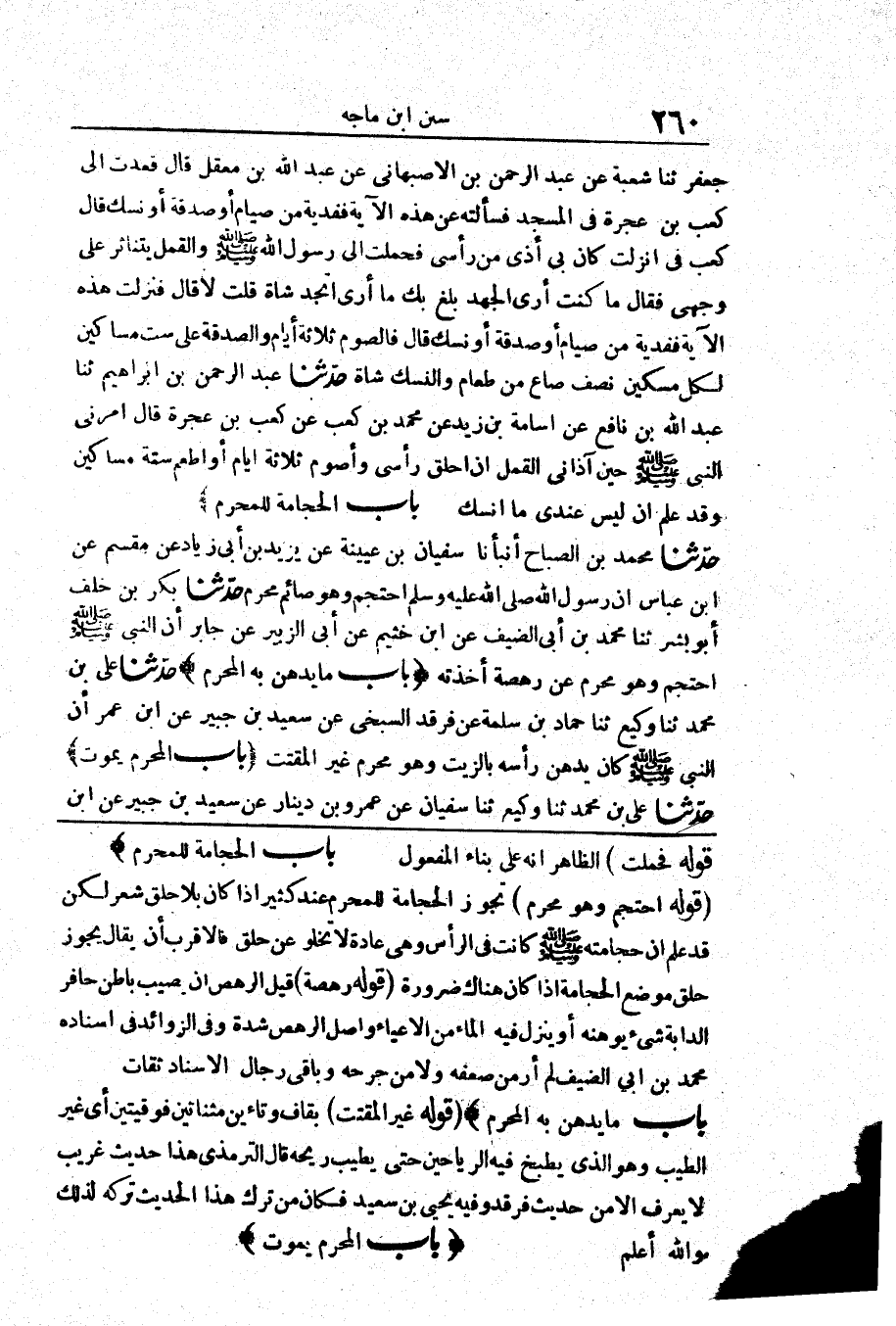 قَوْلُهُ: (احْتَجَمَ وَهُوَ مُحْرِمٌ) تَجُوزُ الْحِجَامَةُ لِلْمُحْرِمِ عِنْدَ كَثِيرٍ إِذَا كَانَ بِلَا حَلْقِ شَعْرٍ، لَكِنْ قَدْ عُلِمَ أَنَّ حِجَامَتَهُ - صَلَّى اللَّهُ عَلَيْهِ وَسَلَّمَ - كَانَتْ فِي الرَّأْسِ وَهِيَ عَادَةً لَا تَخْلُو عَنْ حَلْقٍ، فَالْأَقْرَبُ أَنْ يُقَالَ: يَجُوزُ حَلْقُ مَوْضِعِ الْحِجَامَةِ إِذَا كَانَ هُنَاكَ ضَرُورَةٌ قَوْلُهُ: (رَهْصَةٌ) قِيلَ: الرَّهْصُ أَنْ يُصِيبَ بَاطِنَ حَافِرِ الدَّابَّةِ شَيْءٌ يُوهِنُهُ، أَوْ يَنْزِلَ فِيهِ الْمَاءُ مِنَ الْإِعْيَاءِ وَأَصْلُ الرَّهْصِ شِدَّةٌ، وَفِي الزَّوَائِدِ: فِي إِسْنَادِهِ مُحَمَّدُ بْنُ أَبِي الضَّيْفِ لَمْ أَرَ مَنْ ضَعَّفَهُ وَلَا مَنْ جَرَحَهُ وَبَاقِي رِجَالِ الْإِسْنَادِ ثِقَاتٌ.