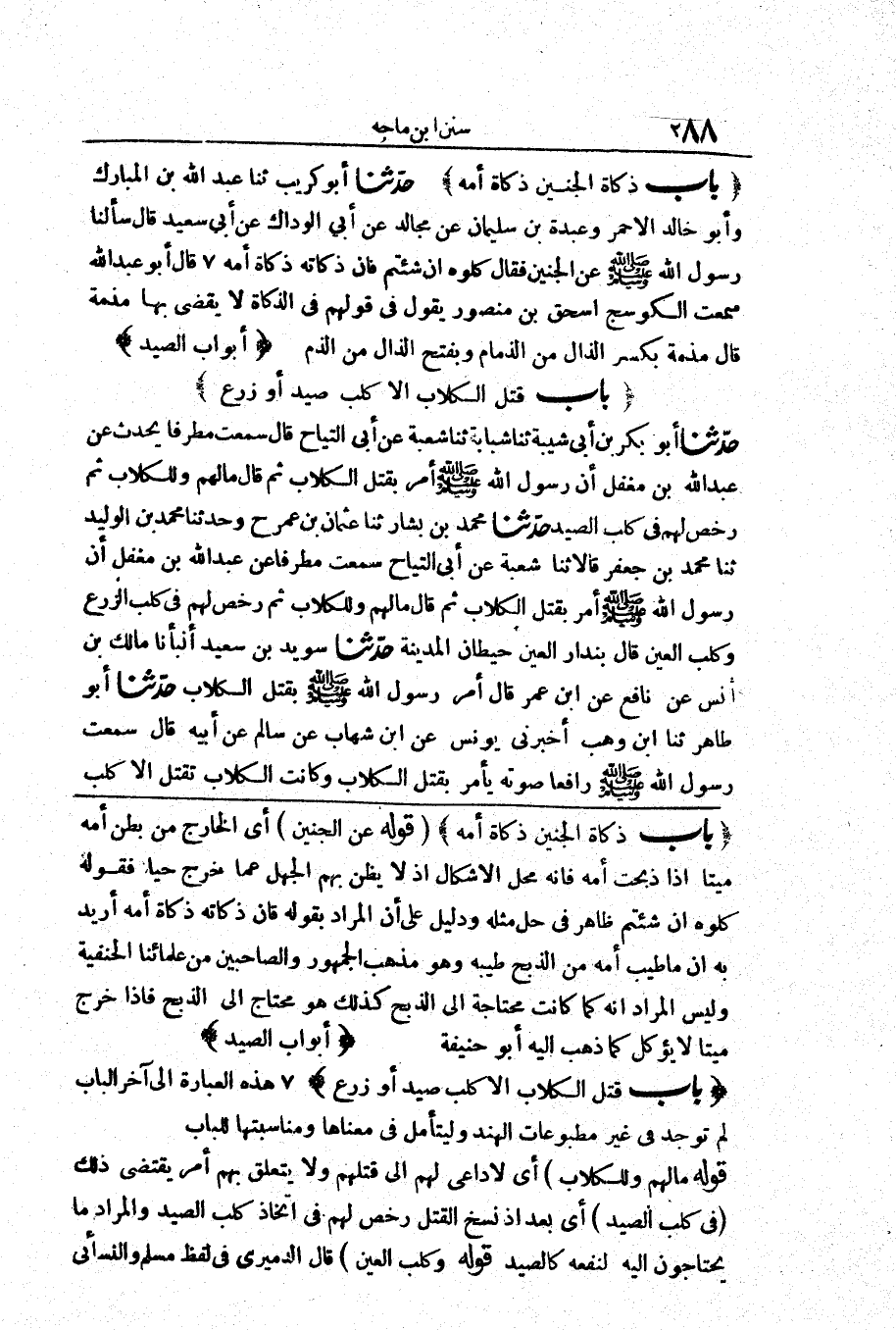 (بَابُ قَتْلِ الْكِلَابِ إِلَّا كَلْبَ صَيْدٍ، أَوْ زَرْعٍ) هَذِهِ الْعِبَارَةُ إِلَى آخِرِ الْبَابِ لَمْ تُوجَدْ فِي غَيْرِ مَطْبُوعَاتِ الْهِنْدِ وَلْيُتَأَمَّلْ فِي مَعْنَاهَا وَمُنَاسَبَتِهَا لِلْبَابِ.