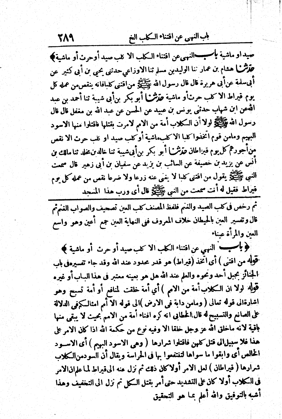 [باب النَّهْيِ عَنْ اقْتِنَاءِ الْكَلْبِ إِلَّا كَلْبَ صَيْدٍ أَوْ حَرْثٍ أَوْ مَاشِيَةٍ]