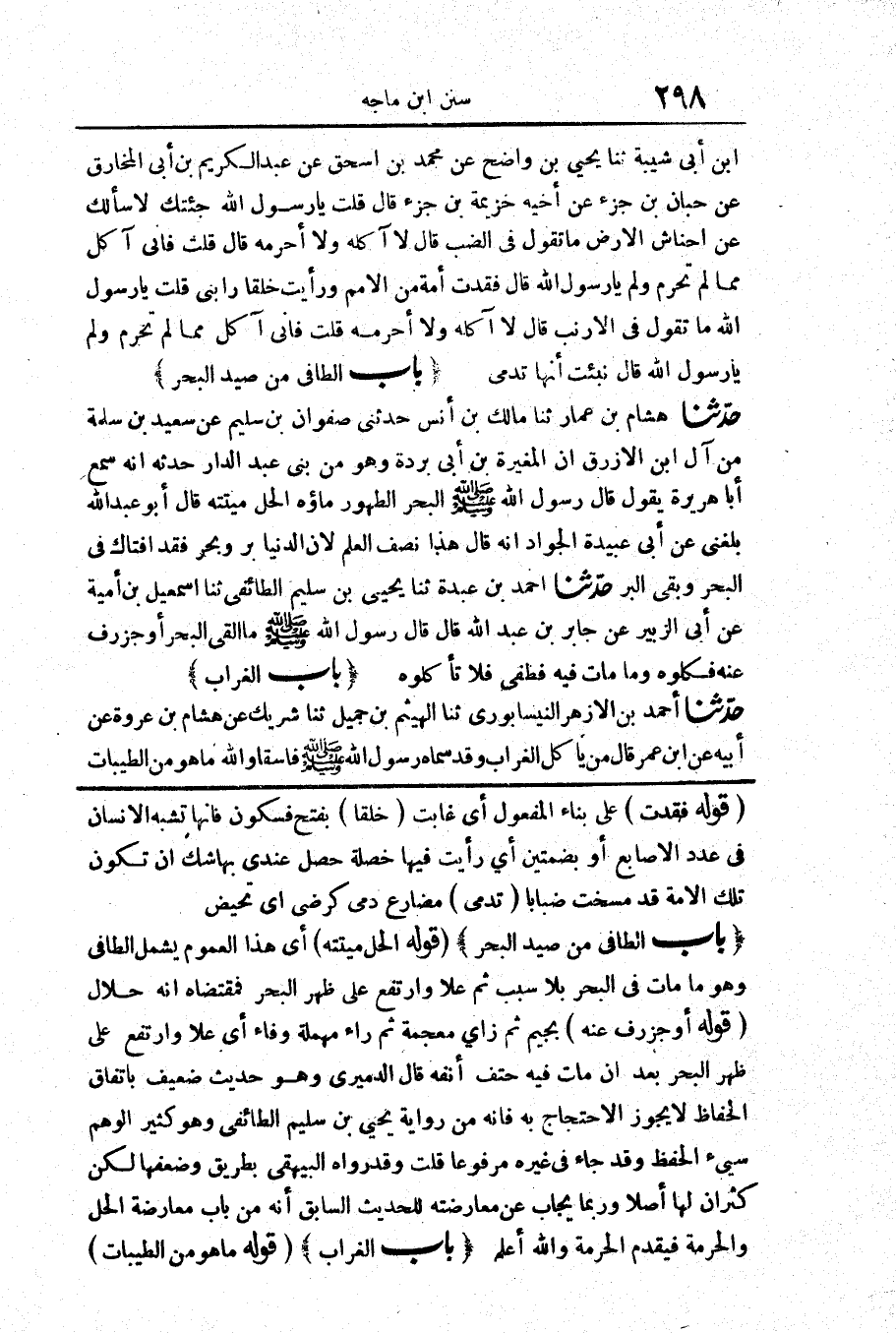 3246 - حَدَّثَنَا هِشَامُ بْنُ عَمَّارٍ حَدَّثَنَا مَالِكُ بْنُ أَنَسٍ حَدَّثَنِي صَفْوَانُ بْنُ سُلَيْمٍ عَنْ سَعِيدِ بْنِ سَلَمَةَ مِنْ آلِ ابْنِ الْأَزْرَقِ أَنَّ الْمُغِيرَةَ بْنَ أَبِي بُرْدَةَ وَهُوَ مِنْ بَنِي عَبْدِ الدَّارِ حَدَّثَهُ أَنَّهُ سَمِعَ أَبَا هُرَيْرَةَ يَقُولُ «قَالَ رَسُولُ اللَّهِ صَلَّى اللَّهُ عَلَيْهِ وَسَلَّمَ الْبَحْرُ الطَّهُورُ مَاؤُهُ الْحِلُّ مَيْتَتُهُ» قَالَ أَبُو عَبْد اللَّهِ بَلَغَنِي عَنْ أَبِي عُبَيْدَةَ الْجَوَادِ أَنَّهُ قَالَ هَذَا نِصْفُ الْعِلْمِ لِأَنَّ الدُّنْيَا بَرٌّ وَبَحْرٌ فَقَدْ أَفْتَاكَ فِي الْبَحْرِ وَبَقِيَ الْبَرُّ