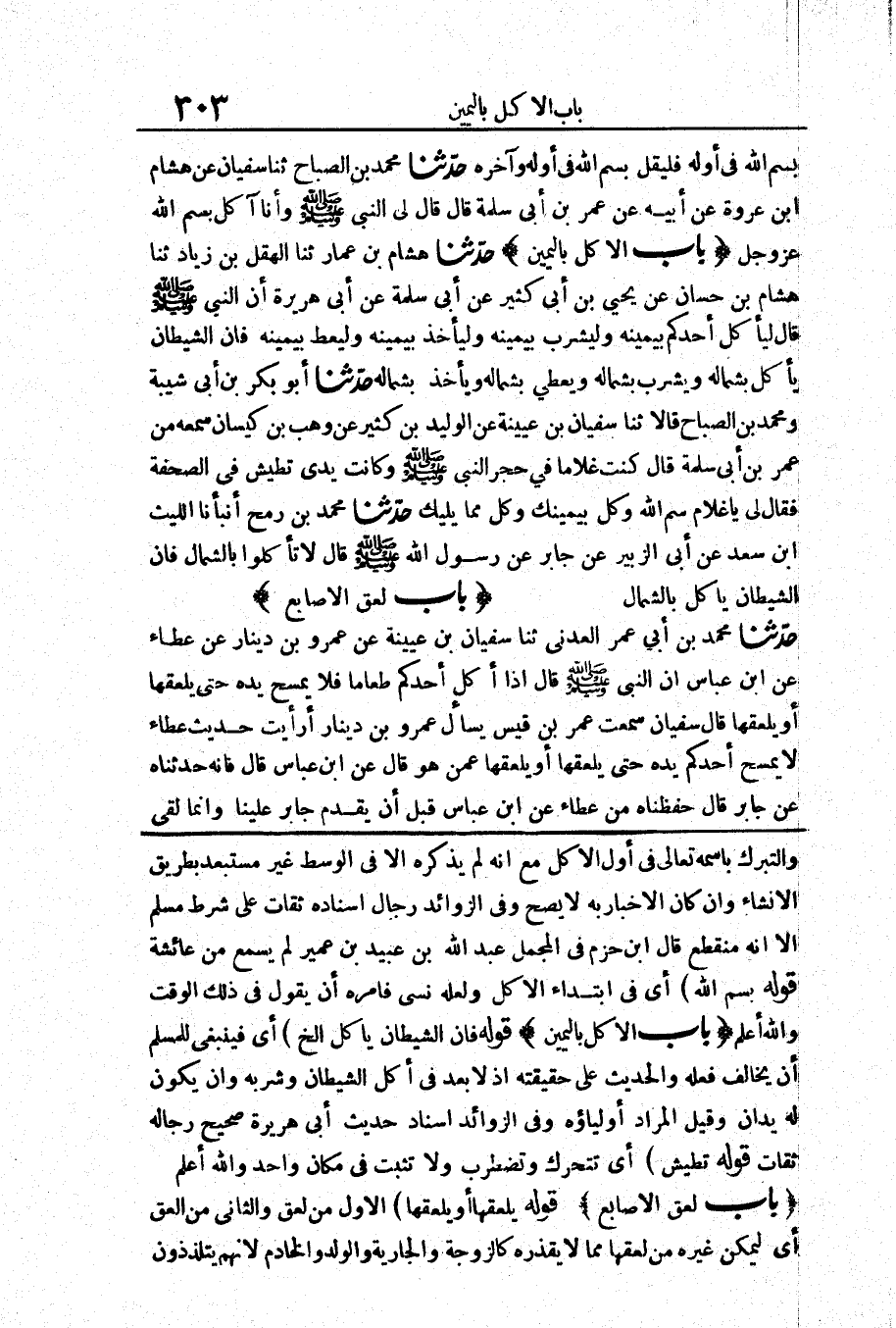 3267 - حَدَّثَنَا أَبُو بَكْرِ بْنُ أَبِي شَيْبَةَ وَمُحَمَّدُ بْنُ الصَّبَّاحِ قَالَا حَدَّثَنَا سُفْيَانُ بْنُ عُيَيْنَةَ عَنْ الْوَلِيدِ بْنِ كَثِيرٍ عَنْ وَهْبِ بْنِ كَيْسَانَ سَمِعَهُ مِنْ عُمَرَ بْنِ أَبِي سَلَمَةَ قَالَ «كُنْتُ غُلَامًا فِي حِجْرِ النَّبِيِّ صَلَّى اللَّهُ عَلَيْهِ وَسَلَّمَ وَكَانَتْ يَدِي تَطِيشُ فِي الصَّحْفَةِ فَقَالَ لِي يَا غُلَامُ سَمِّ اللَّهَ وَكُلْ بِيَمِينِكَ وَكُلْ مِمَّا يَلِيكَ»