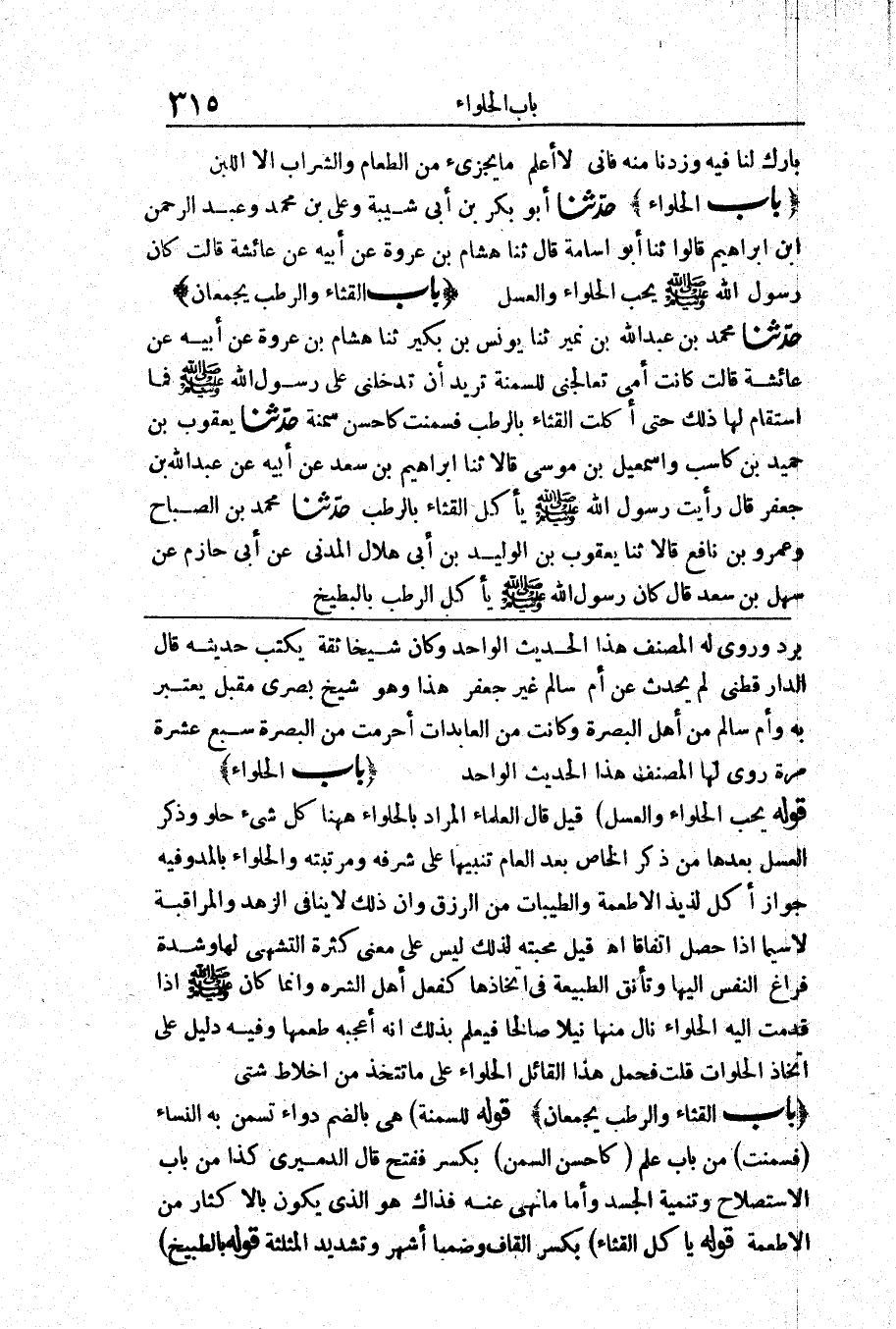 قَوْلُهُ: (يُحِبُّ الْحَلْوَاءَ وَالْعَسَلَ) قِيلَ: قَالَ الْعُلَمَاءُ الْمُرَادُ بِالْحَلْوَاءِ هَاهُنَا كُلُّ شَيْءٍ حُلْوٍ وَذِكْرُ الْعَسَلِ بَعْدَهَا مِنْ ذِكْرِ الْخَاصِّ بَعْدَ الْعَامِّ تَنْبِيهًا عَلَى شَرَفِهِ وَمَرْتَبَتِهِ وَالْحَلْوَاءُ بِالْمَدِّ وَفِيهِ جَوَازُ أَكْلِ لَذِيذِ الْأَطْعِمَةِ وَالطَّيِّبَاتِ مِنَ الرِّزْقِ وَأَنَّ ذَلِكَ لَا يُنَافِي الزُّهْدَ وَالْمُرَاقَبَةَ لَا سِيَّمَا إِذَا حَصَلَ اتِّفَاقًا اهـ، قِيلَ: مَحَبَّتُهُ لِذَلِكَ لَيْسَ عَلَى مَعْنَى كَثْرَةِ التَّشَهِّي لَهَا وَشِدَّةِ فَرَاغِ النَّفْسِ إِلَيْهَا وَتَأَنُّقِ الطَّبِيعَةِ فِي اتِّخَاذِهَا كَفِعْلِ أَهْلِ الشَّرَهِ، وَإِنَّمَا كَانَ - صَلَّى اللَّهُ عَلَيْهِ وَسَلَّمَ - إِذَا قُدِّمَتْ إِلَيْهِ الْحَلْوَاءُ نَالَ مِنْهَا نَيْلًا صَالِحًا فَيُعْلَمُ بِذَلِكَ أَنَّهُ أَعْجَبَهُ طَعْمُهَا وَفِيهِ دَلِيلٌ عَلَى اتِّخَاذِ الْحُلْوَاتِ. قُلْتُ: فَحَمَلَ هَذَا الْقَائِلُ الْحَلْوَاءَ عَلَى مَا تُتَّخَذُ مِنْ أَخْلَاطٍ شَتَّى.