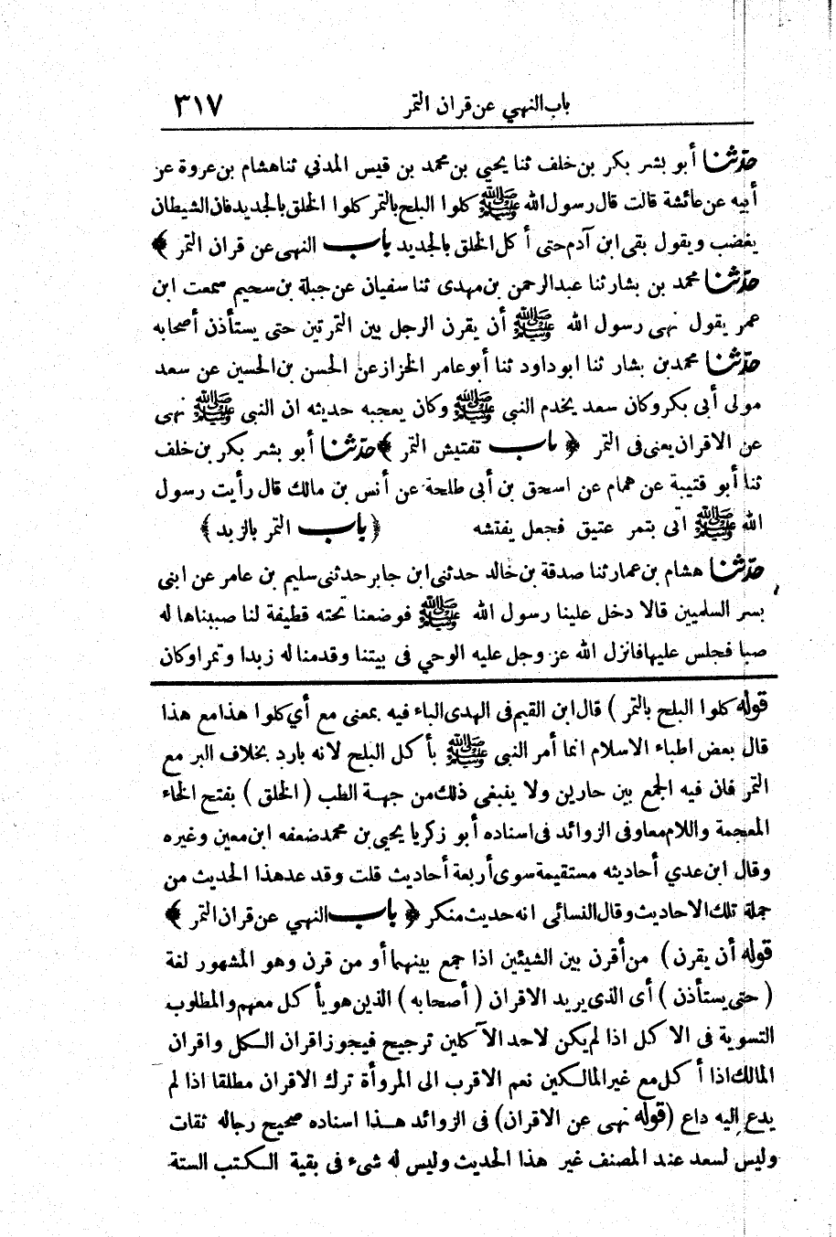 قَوْلُهُ: (نَهَى عَنِ الْإِقْرَانِ) ، فِي الزَّوَائِدِ: هَذَا إِسْنَادُهُ صَحِيحٌ رِجَالُهُ ثِقَاتٌ وَلَيْسَ لِسَعْدٍ عِنْدَ الْمُصَنِّفِ غَيْرُ هَذَا الْحَدِيثِ وَلَيْسَ لَهُ شَيْءٌ فِي بَقِيَّةِ الْكُتُبِ السِّتَّةِ.