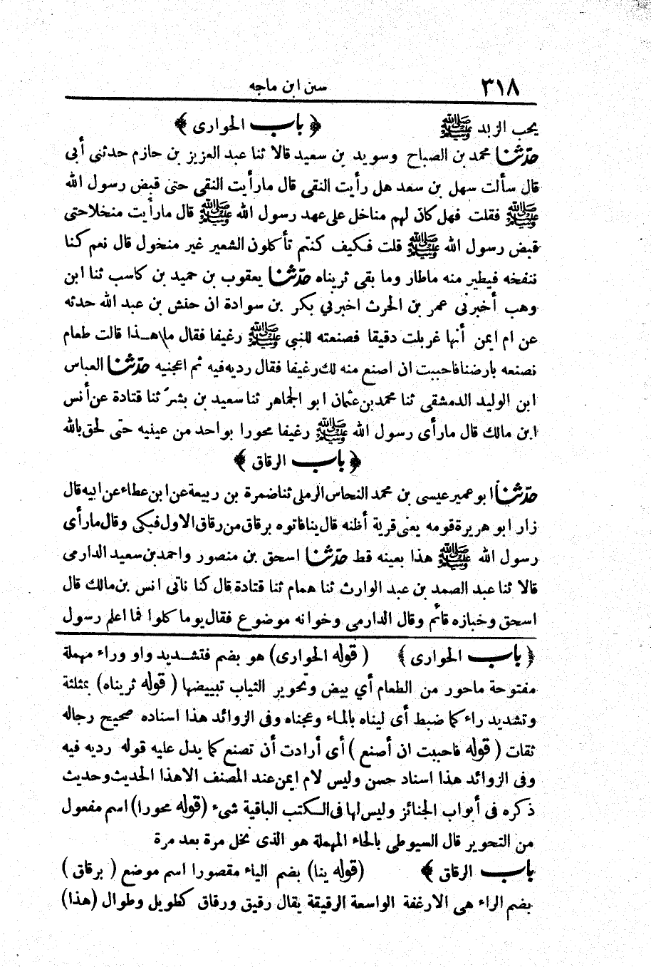 3335 - حَدَّثَنَا مُحَمَّدُ بْنُ الصَّبَّاحِ وَسُوَيْدُ بْنُ سَعِيدٍ قَالَا حَدَّثَنَا عَبْدُ الْعَزِيزِ بْنُ أَبِي حَازِمٍ حَدَّثَنِي أَبِي قَالَ سَأَلْتُ سَهْلَ بْنَ سَعْدٍ «هَلْ رَأَيْتَ النَّقِيَّ قَالَ مَا رَأَيْتُ النَّقِيَّ حَتَّى قُبِضَ رَسُولُ اللَّهِ صَلَّى اللَّهُ عَلَيْهِ وَسَلَّمَ فَقُلْتُ فَهَلْ كَانَ لَهُمْ مَنَاخِلُ عَلَى عَهْدِ رَسُولِ اللَّهِ صَلَّى اللَّهُ عَلَيْهِ وَسَلَّمَ قَالَ مَا رَأَيْتُ مُنْخُلًا حَتَّى قُبِضَ رَسُولُ اللَّهِ صَلَّى اللَّهُ عَلَيْهِ وَسَلَّمَ قُلْتُ فَكَيْفَ كُنْتُمْ تَأْكُلُونَ الشَّعِيرَ غَيْرَ مَنْخُولٍ قَالَ نَعَمْ كُنَّا نَنْفُخُهُ فَيَطِيرُ مِنْهُ مَا طَارَ وَمَا بَقِيَ ثَرَّيْنَاهُ»