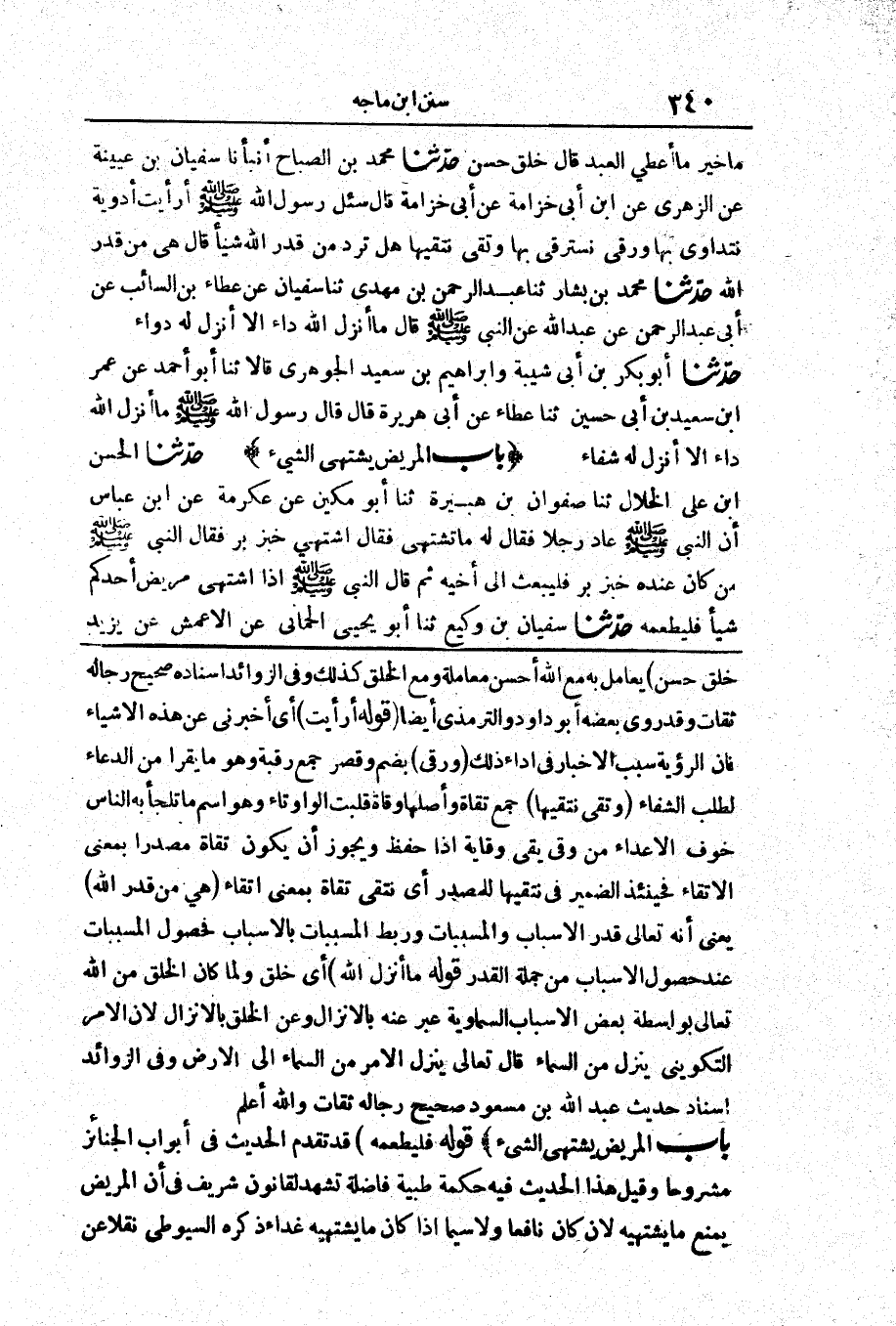 3437 - حَدَّثَنَا مُحَمَّدُ بْنُ الصَّبَّاحِ أَنْبَأَنَا سُفْيَانُ بْنُ عُيَيْنَةَ عَنْ الزُّهْرِيِّ عَنْ ابْنِ أَبِي خِزَامَةَ عَنْ أَبِي خِزَامَةَ قَالَ «سُئِلَ رَسُولُ اللَّهِ صَلَّى اللَّهُ عَلَيْهِ وَسَلَّمَ أَرَأَيْتَ أَدْوِيَةً نَتَدَاوَى بِهَا وَرُقًى نَسْتَرْقِي بِهَا وَتُقًى نَتَّقِيهَا هَلْ تَرُدُّ مِنْ قَدَرِ اللَّهِ شَيْئًا قَالَ هِيَ مِنْ قَدَرِ اللَّهِ»