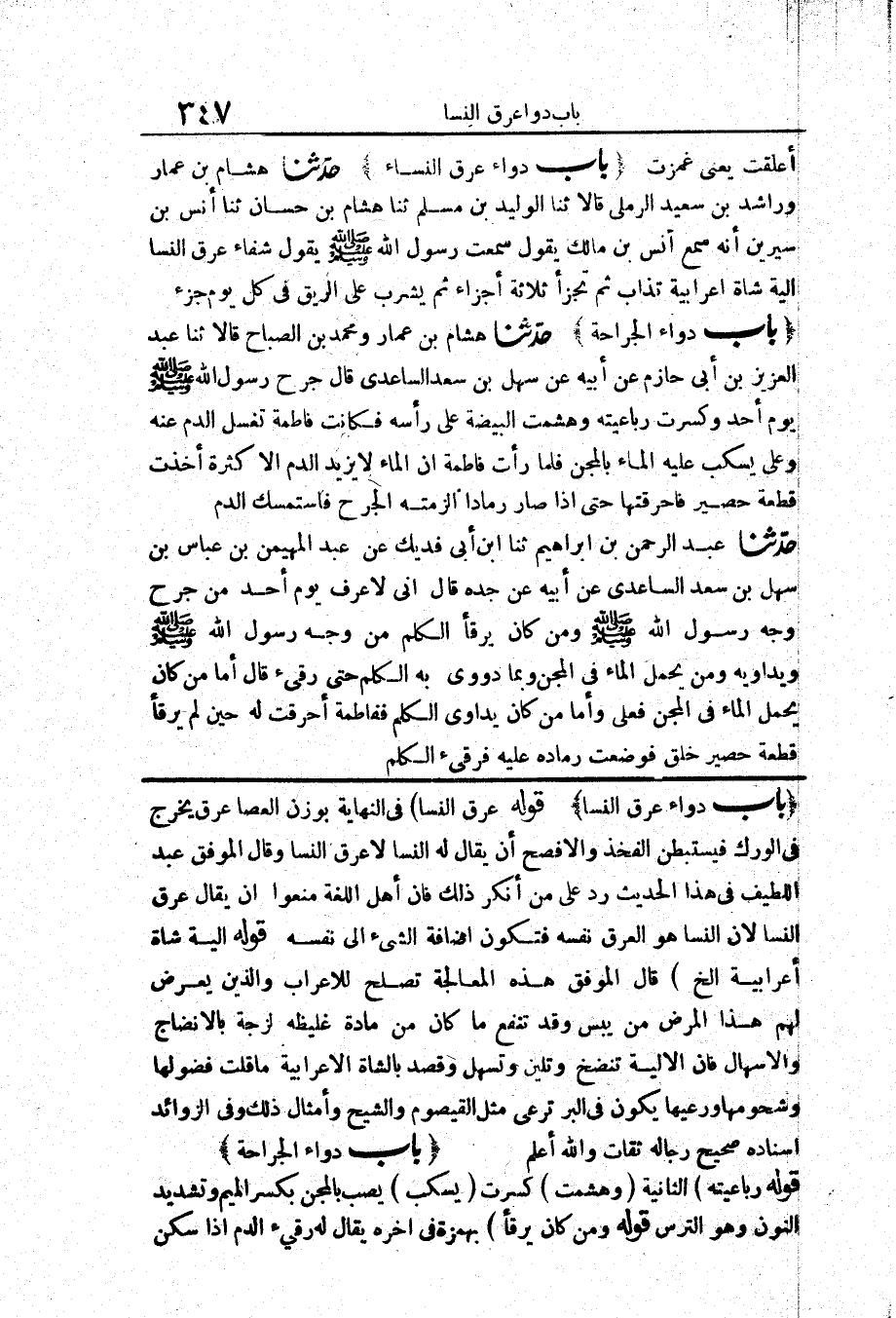 3464 - حَدَّثَنَا هِشَامُ بْنُ عَمَّارٍ وَمُحَمَّدُ بْنُ الصَّبَّاحِ قَالَا حَدَّثَنَا عَبْدُ الْعَزِيزِ بْنُ أَبِي حَازِمٍ عَنْ أَبِيهِ عَنْ سَهْلِ بْنِ سَعْدٍ السَّاعِدِيِّ قَالَ «جُرِحَ رَسُولُ اللَّهِ صَلَّى اللَّهُ عَلَيْهِ وَسَلَّمَ يَوْمَ أُحُدٍ وَكُسِرَتْ رَبَاعِيَتُهُ وَهُشِمَتْ الْبَيْضَةُ عَلَى رَأْسِهِ فَكَانَتْ فَاطِمَةُ تَغْسِلُ الدَّمَ عَنْهُ وَعَلِيٌّ يَسْكِبُ عَلَيْهِ الْمَاءَ بِالْمِجَنِّ فَلَمَّا رَأَتْ فَاطِمَةُ أَنَّ الْمَاءَ لَا يَزِيدُ الدَّمَ إِلَّا كَثْرَةً أَخَذَتْ قِطْعَةَ حَصِيرٍ فَأَحْرَقَتْهَا حَتَّى إِذَا صَارَ رَمَادًا أَلْزَمَتْهُ الْجُرْحَ فَاسْتَمْسَكَ الدَّمُ»