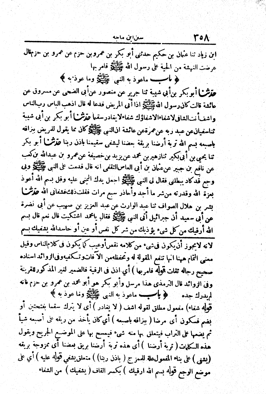 3522 - حَدَّثَنَا أَبُو بَكْرٍ حَدَّثَنَا يَحْيَى بْنُ أَبِي بُكَيْرٍ حَدَّثَنَا زُهَيْرُ بْنُ مُحَمَّدٍ عَنْ يَزِيدَ بْنِ خُصَيْفَةَ عَنْ عَمْرِو بْنِ عَبْدِ اللَّهِ بْنِ كَعْبٍ عَنْ نَافِعِ بْنِ جُبَيْرٍ عَنْ عُثْمَانَ بْنِ أَبِي الْعَاصِ الثَّقَفِيِّ أَنَّهُ قَالَ «قَدِمْتُ عَلَى النَّبِيِّ صَلَّى اللَّهُ عَلَيْهِ وَسَلَّمَ وَبِي وَجَعٌ قَدْ كَادَ يُبْطِلُنِي فَقَالَ لِي النَّبِيُّ صَلَّى اللَّهُ عَلَيْهِ وَسَلَّمَ اجْعَلْ يَدَكَ الْيُمْنَى عَلَيْهِ وَقُلْ بِسْمِ اللَّهِ أَعُوذُ بِعِزَّةِ اللَّهِ وَقُدْرَتِهِ مِنْ شَرِّ مَا أَجِدُ وَأُحَاذِرُ سَبْعَ مَرَّاتٍ فَقُلْتُ ذَلِكَ فَشَفَانِيَ اللَّهُ»