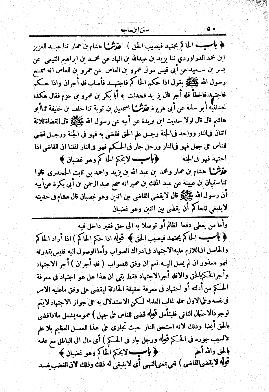 2316 - حَدَّثَنَا هِشَامُ بْنُ عَمَّارٍ وَمُحَمَّدُ بْنُ عَبْدِ اللَّهِ بْنِ يَزِيدَ وَأَحْمَدُ بْنُ ثَابِتٍ الْجَحْدَرِيُّ قَالُوا حَدَّثَنَا سُفْيَانُ بْنُ عُيَيْنَةَ عَنْ عَبْدِ الْمَلِكِ بْنِ عُمَيْرٍ أَنَّهُ سَمِعَ عَبْدَ الرَّحْمَنِ بْنَ أَبِي بَكْرَةَ عَنْ أَبِيهِ «أَنَّ رَسُولَ اللَّهِ صَلَّى اللَّهُ عَلَيْهِ وَسَلَّمَ قَالَ لَا يَقْضِي الْقَاضِي بَيْنَ اثْنَيْنِ وَهُوَ غَضْبَانُ قَالَ هِشَامٌ فِي حَدِيثِهِ لَا يَنْبَغِي لِلْحَاكِمِ أَنْ يَقْضِيَ بَيْنَ اثْنَيْنِ وَهُوَ غَضْبَانُ»