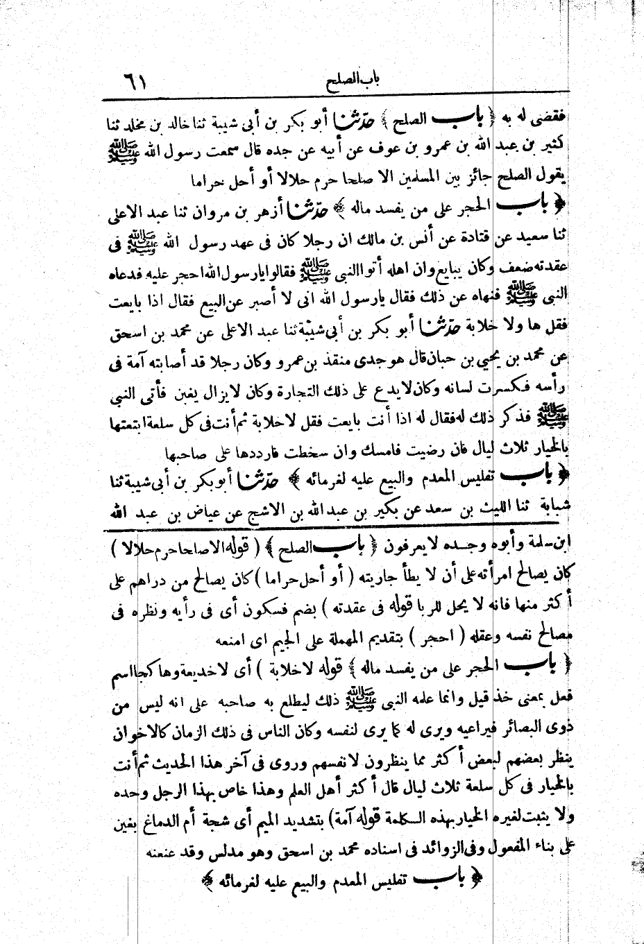 2353 - حَدَّثَنَا أَبُو بَكْرِ بْنُ أَبِي شَيْبَةَ حَدَّثَنَا خَالِدُ بْنُ مَخْلَدٍ حَدَّثَنَا كَثِيرُ بْنُ عَبْدِ اللَّهِ بْنِ عَمْرِو بْنِ عَوْفٍ عَنْ أَبِيهِ عَنْ جَدِّهِ قَالَ «سَمِعْتُ رَسُولَ اللَّهِ صَلَّى اللَّهُ عَلَيْهِ وَسَلَّمَ يَقُولُ الصُّلْحُ جَائِزٌ بَيْنَ الْمُسْلِمِينَ إِلَّا صُلْحًا حَرَّمَ حَلَالًا أَوْ أَحَلَّ حَرَامًا»
