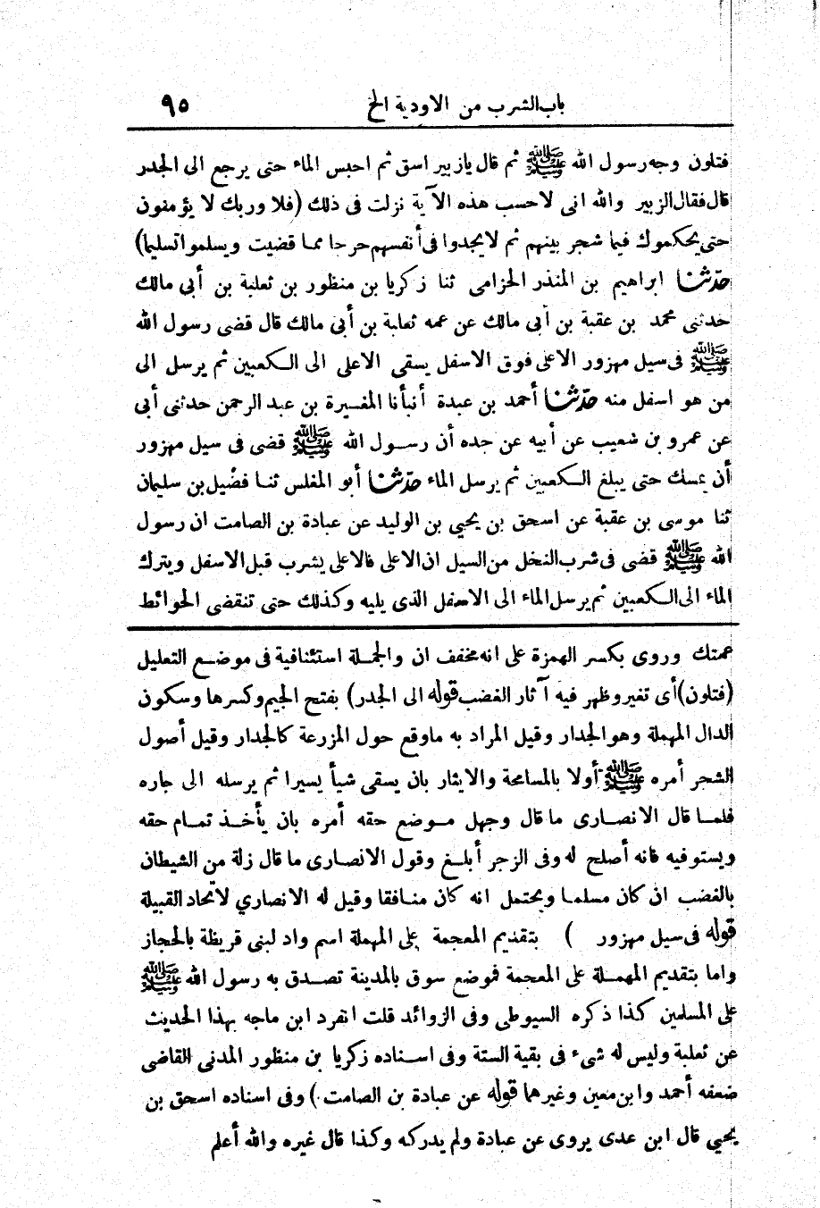 2481 - حَدَّثَنَا إِبْرَاهِيمُ بْنُ الْمُنْذِرِ الْحِزَامِيُّ حَدَّثَنَا زَكَرِيَّا بْنُ مَنْظُورِ بْنِ ثَعْلَبَةَ بْنِ أَبِي مَالِكٍ حَدَّثَنِي مُحَمَّدُ بْنُ عُقْبَةَ بْنِ أَبِي مَالِكٍ عَنْ عَمِّهِ ثَعْلَبَةَ بْنِ أَبِي مَالِكٍ قَالَ «قَضَى رَسُولُ اللَّهِ صَلَّى اللَّهُ عَلَيْهِ وَسَلَّمَ فِي سَيْلِ مَهْزُورٍ الْأَعْلَى فَوْقَ الْأَسْفَلِ يَسْقِي الْأَعْلَى إِلَى الْكَعْبَيْنِ ثُمَّ يُرْسِلُ إِلَى مَنْ هُوَ أَسْفَلُ مِنْهُ»
