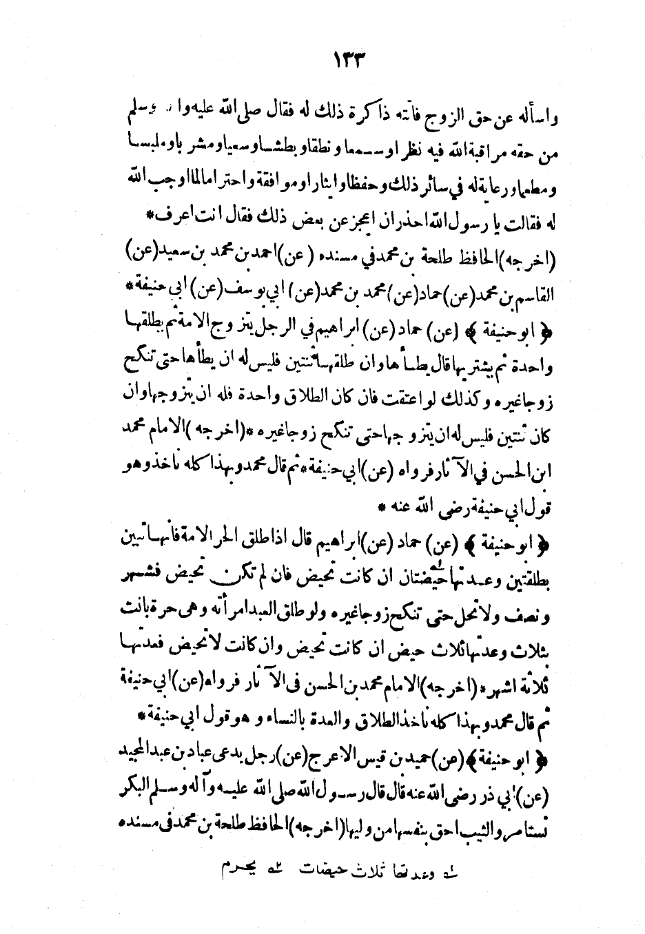 (أخرجه) الحافظ طلحة بن محمد في مسنده (عن) أحمد بن محمد بن سعيد (عن) القاسم بن محمد (عن) حماد (عن) محمد بن محمد (عن) أبي يوسف (عن) أبي حنيفة*