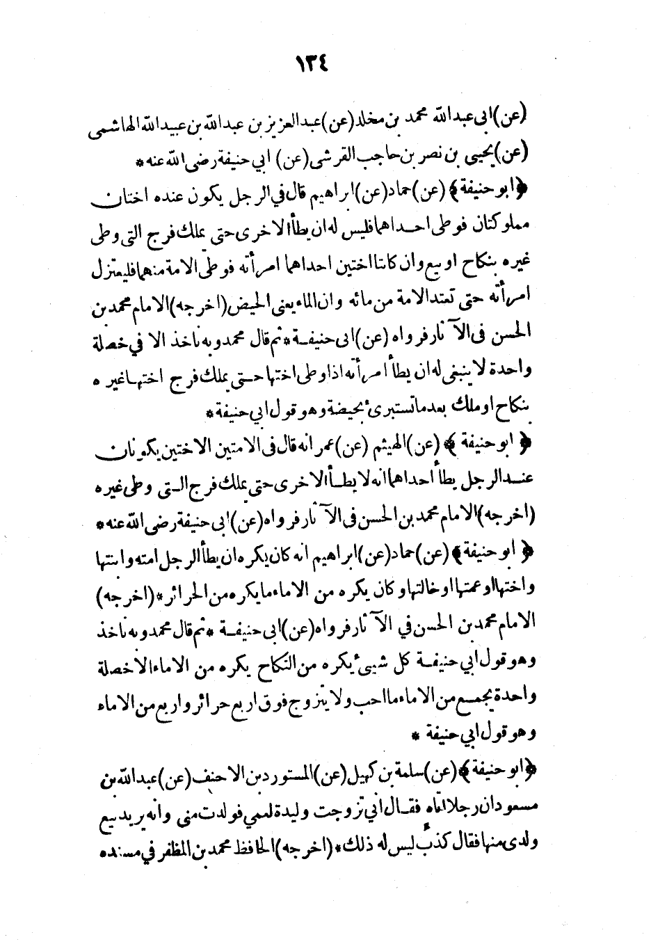 (عن) أبي عبد الله محمد بن مخلد (عن) عبد العزيز بن عبد الله بن عبيد الله الهاشمي (عن) يحيى بن نصر بن حاجب القرشي (عن) أبي حنيفة رضي الله عنه*