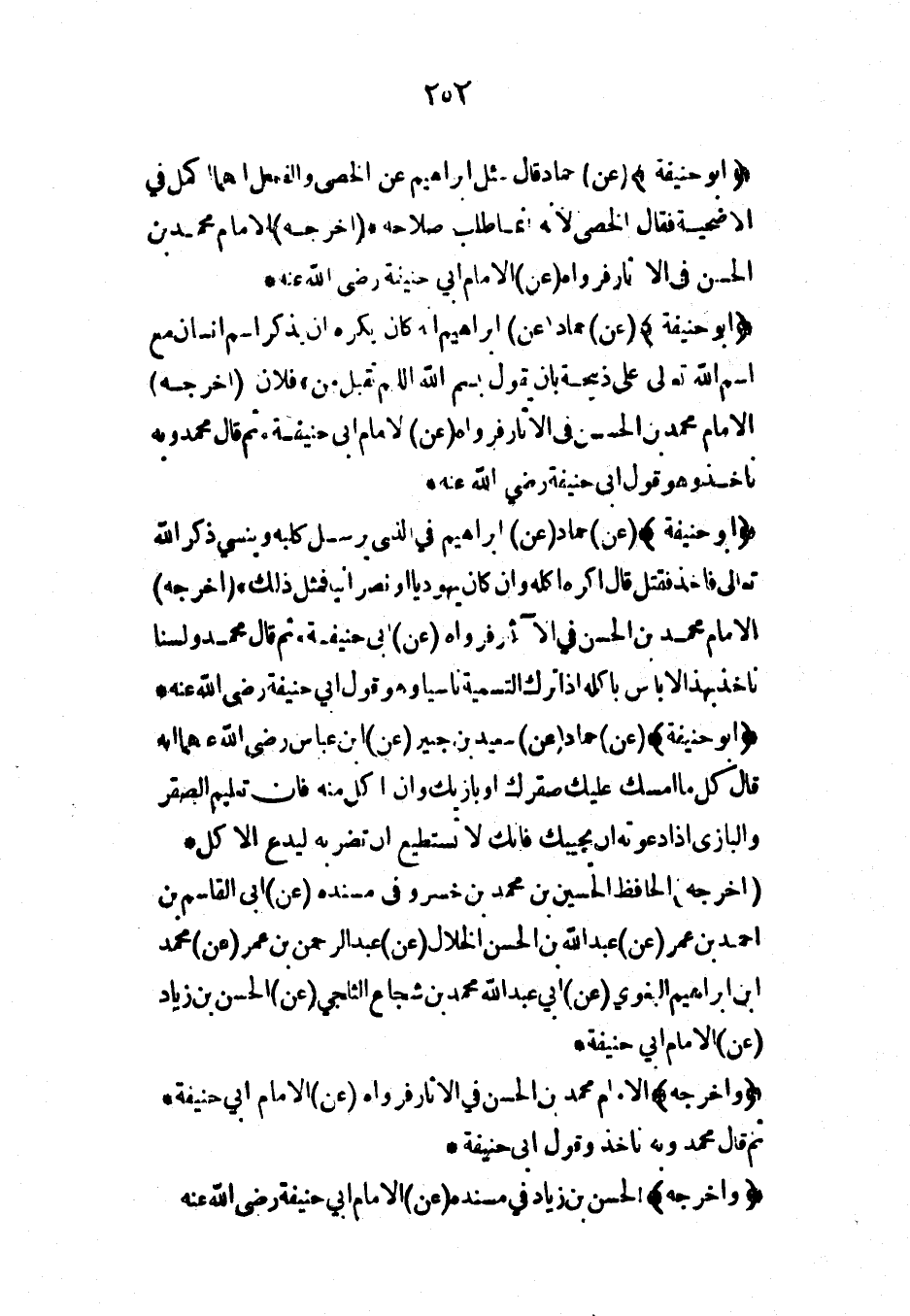 (أبو حنيفة) (عن) حماد قال سئل إبراهيم عن الخصي والفحل أنهما أكمل في الأضحية فقال الخصي لأنه إنما طلب صلاحه* (أخرجه) الإمام محمد بن الحسن في الآثار فرواه (عن) الإمام أبي حنيفة رضي الله عنه*