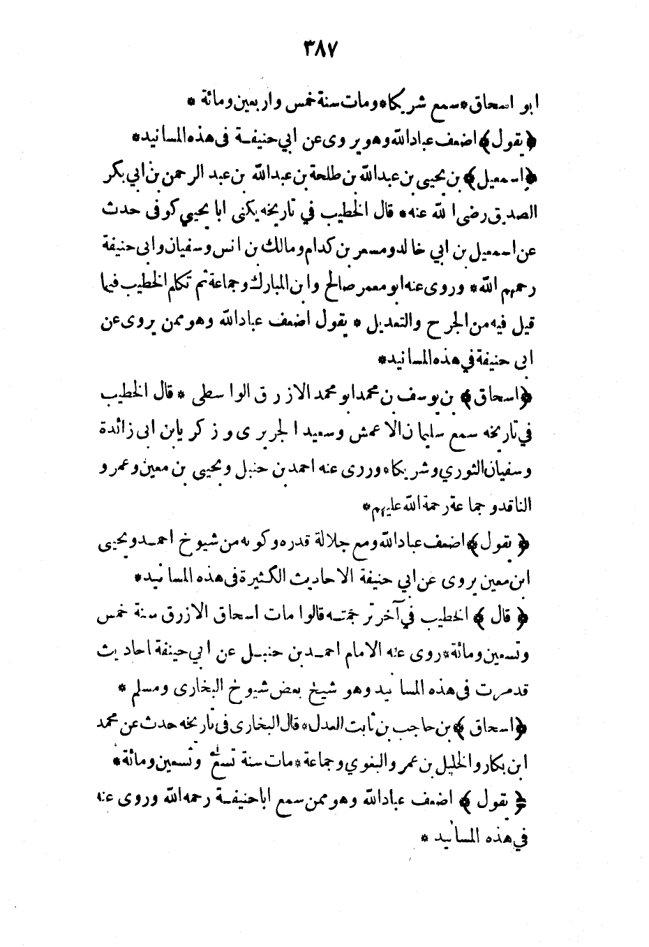 (يقول) أضعف عباد الله ومع جلالة قدره وكونه من شيوخ أحمد ويحيى ابن معين يروي عن أبي حنيفة الأحاديث الكثيرة في هذه المسانيد*