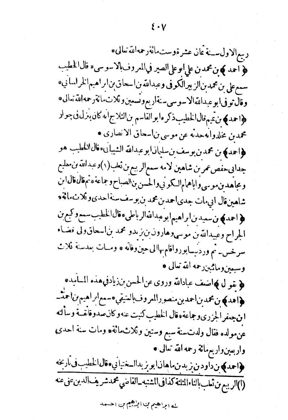 (أحمد) بن تميم قال الخطيب ذكره أبو القاسم بن الثلاج أنه كان ينزل في جوار محمد بن مخلد وأنه حدثه عن موسى بن إسحاق الأنصاري*
