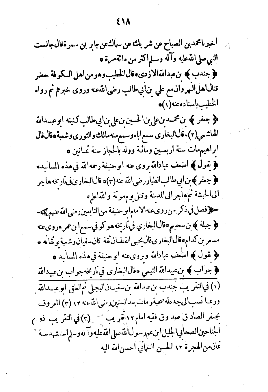 (جندب) بن عبد الله الأزدي قال الخطيب وهو من أهل الكوفة حضر قتال أهل النهروان مع علي بن أبي طالب رضي الله عنه وروى خبرهم ثم رواه الخطيب بإسناده عنه*
