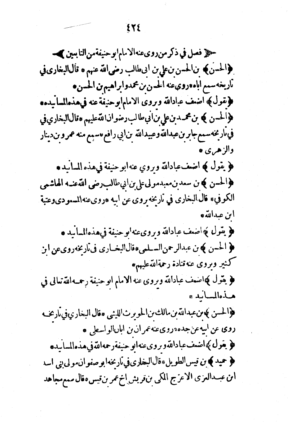 فصل في ذكر من روى عنه الإمام أبو حنيفة من التابعين