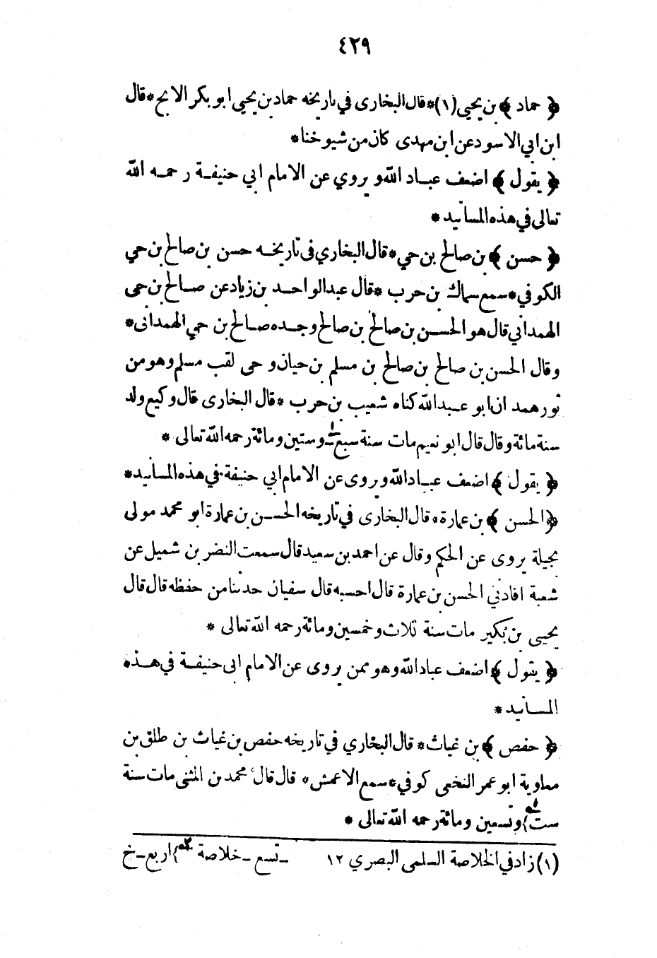 (حسن) بن صالح بن حي* قال البخاري في تاريخه حسن بن صالح بن حي الكوفي* سمع سماك بن حرب قال عبد الواحد بن زياد عن صالح بن حي الهمداني قال هو الحسن بن صالح بن صالح وجده صالح بن حي الهمداني* وقال الحسن بن صالح بن صالح بن مسلم بن حيان وحي لقب مسلم وهو من ثور همدان أبو عبد الله كناه شعيب بن حرب* قال البخاري قال وكيع ولد سنة مائة وقال قال أبو نعيم مات سنة سبع وستين ومائة رحمه الله تعالى*