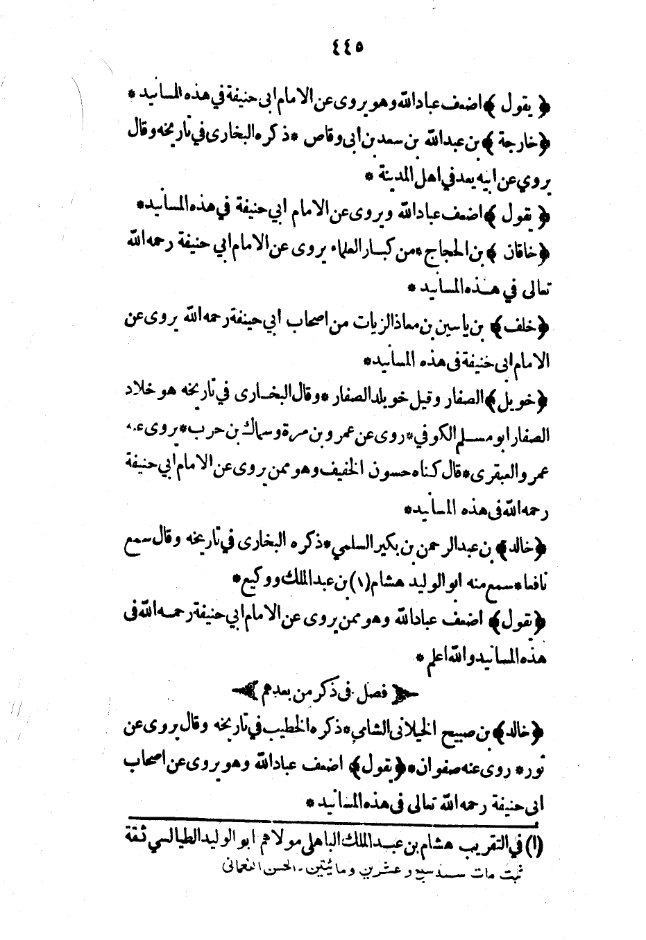 فصل في ذكر أصحاب الإمام أبي حنيفة الذين رووا عنه في هذه المسانيد