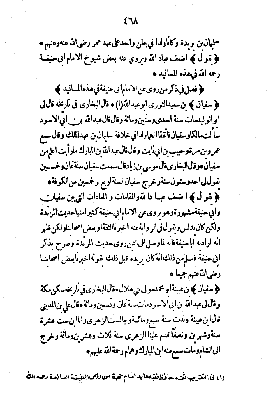 (سليمان) بن مهران الأعمش* قال البخاري في تاريخه كنيته أبو محمد مولى بني كاهل رأى أنس بن مالك وسعيد بن جبير وإبراهيم* ولد سنة ستين ومات سنة ثمان وأربعون ومائة* سمع منه الثوري وشعبة وأبو إسحاق السبيعي* قال البخاري قال صدقة بن عبد الرحمن ما أعلم أحداً يعلم بحديث ابن مسعود أعلم من الأعمش رحمه الله تعالى*