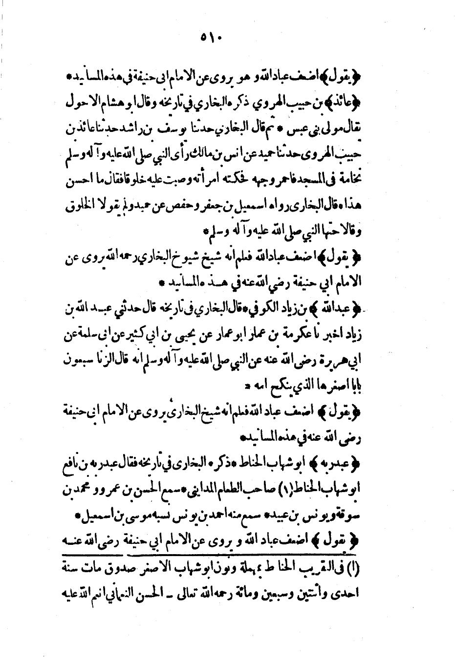 (عبد الله) بن نمير* قال البخاري في تاريخه أبو هشام الكوفي الهمذاني* سمع عبد الله العمري وهشام بن عروة* قال البخاري قال لي أحمد بن أبي رجاء مات سنة تسع وتسعين ومائة رحمة الله عليه*