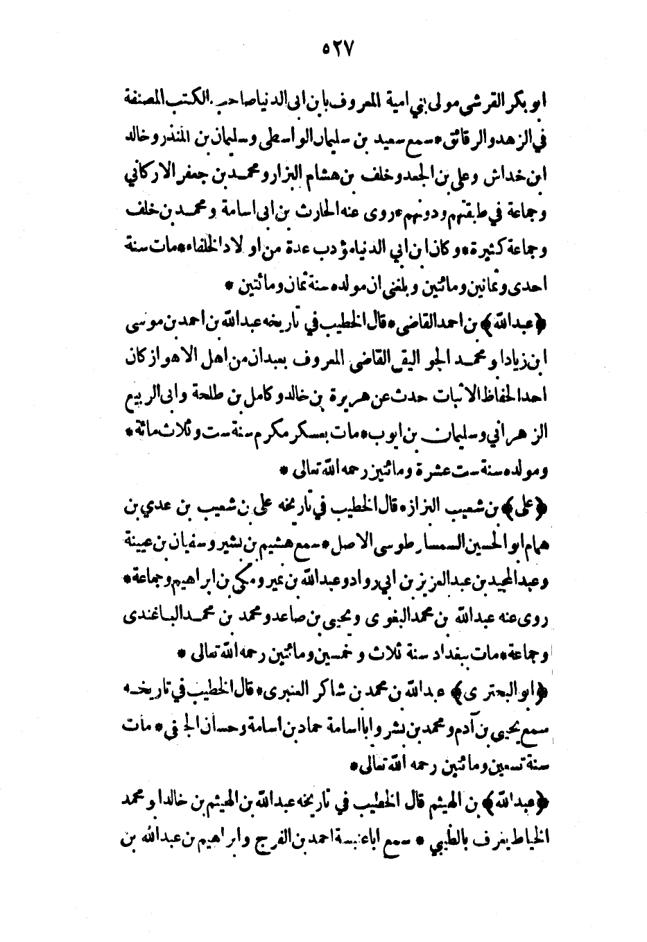 ابن عقدة وأبو بكر بن آدم الكوفيان وأبو بكر بن الجعابي وأحمد بن محمد بن يعقوب الكاغدي البغدادي وعامة أهل بخارى* قال ولد ليلة الأربعاء بغرة شهر ربيع الأول سنة ثمان وخمسين ومائتين* وتوفي يوم الجمعة لخمس بقيت من شوال سنة أربعين وثلاث مائة*