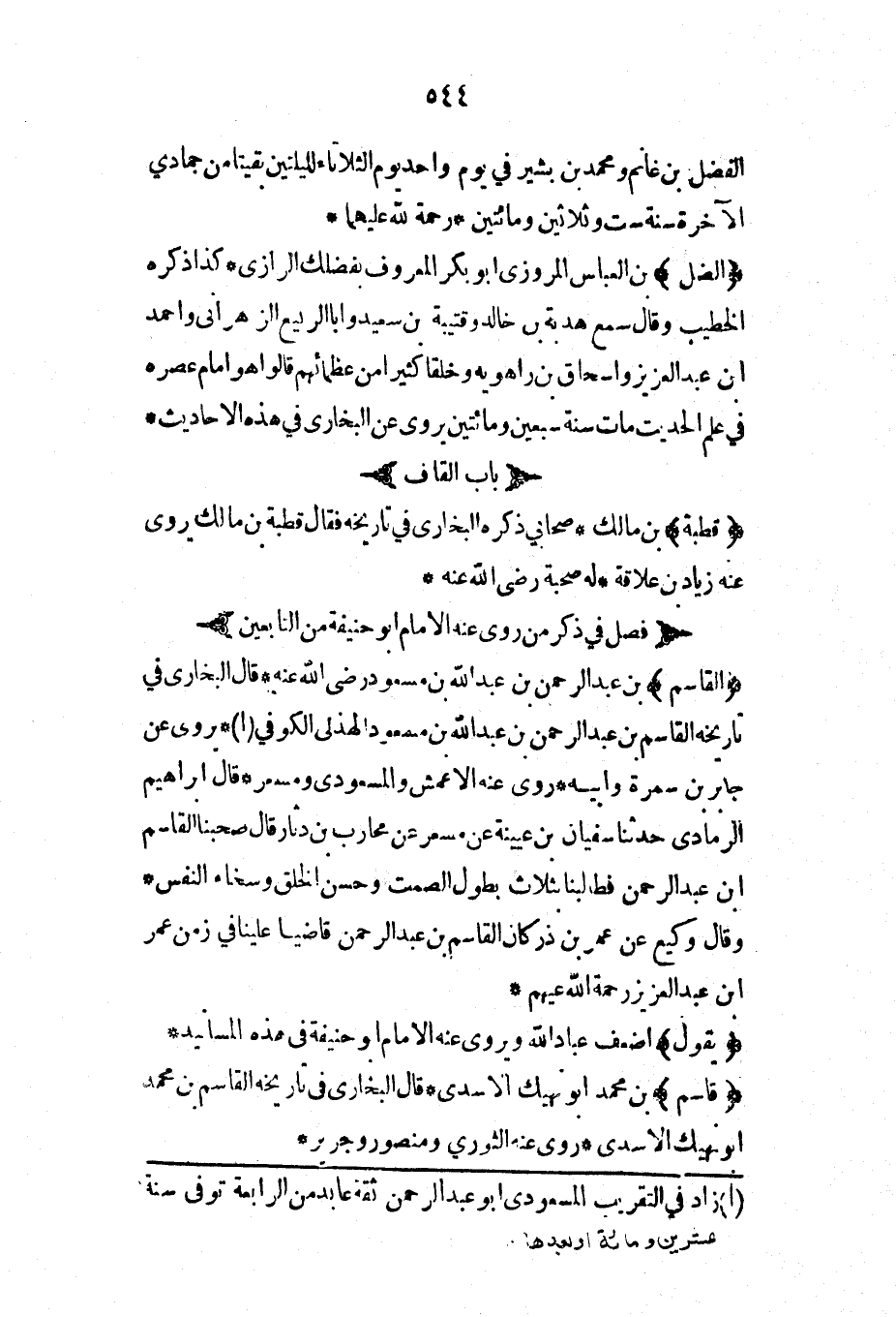 فصل في ذكر من روى عنه الإمام أبي حنيفة من التابعين رحمهم الله تعالى