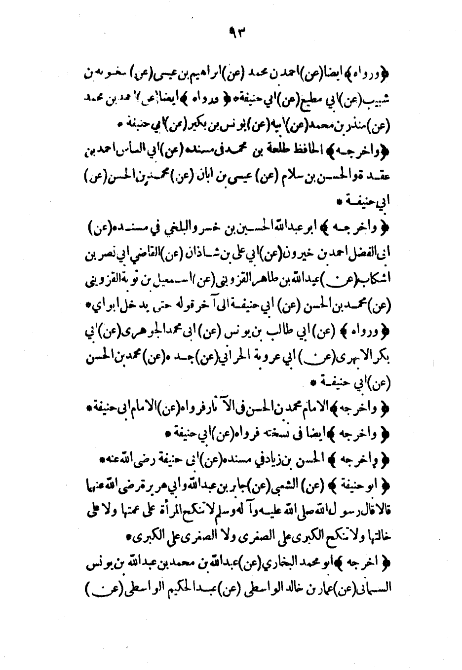 (ورواه) أيضاً (عن) أحمد بن محمد (عن) إبراهيم بن عيسى (عن) سختويه بن شبيب (عن) أبي مطيع (عن) أبي حنيفة* (ورواه) أيضاً (عن) أحمد بن محمد (عن) منذر بن محمد (عن) أبيه (عن) يونس بن بكير (عن) أبي حنيفة*
