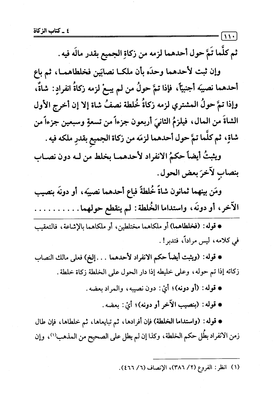 * قوله: (ويثبت أيضًا حكم الانفراد لأحدهما. . . إلخ) فعلى مالك النصاب زكاته إذا تم حوله، وعلى خليطه إذا دار الحول على الخلطة زكاة خلطة.
