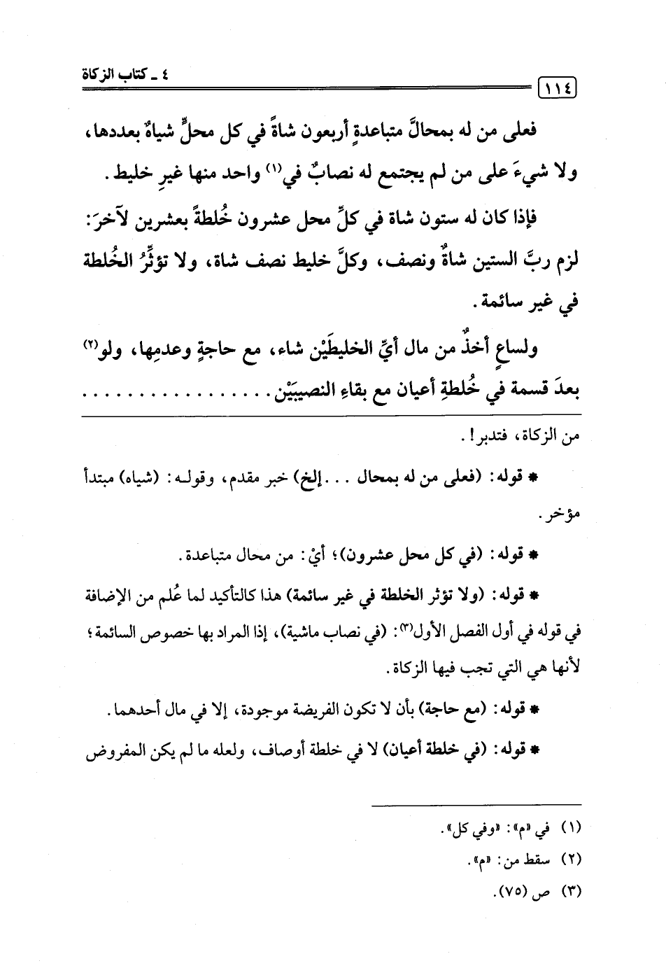 * قوله: (ولا تؤثر الخلطة في غير سائمة) هذا كالتأكيد لما عُلم من الإضافة في قوله في أول الفصل الأول (¬3): (في نصاب ماشية)، إذا المراد بها خصوص السائمة؛ لأنها هي التي تجب فيها الزكاة.