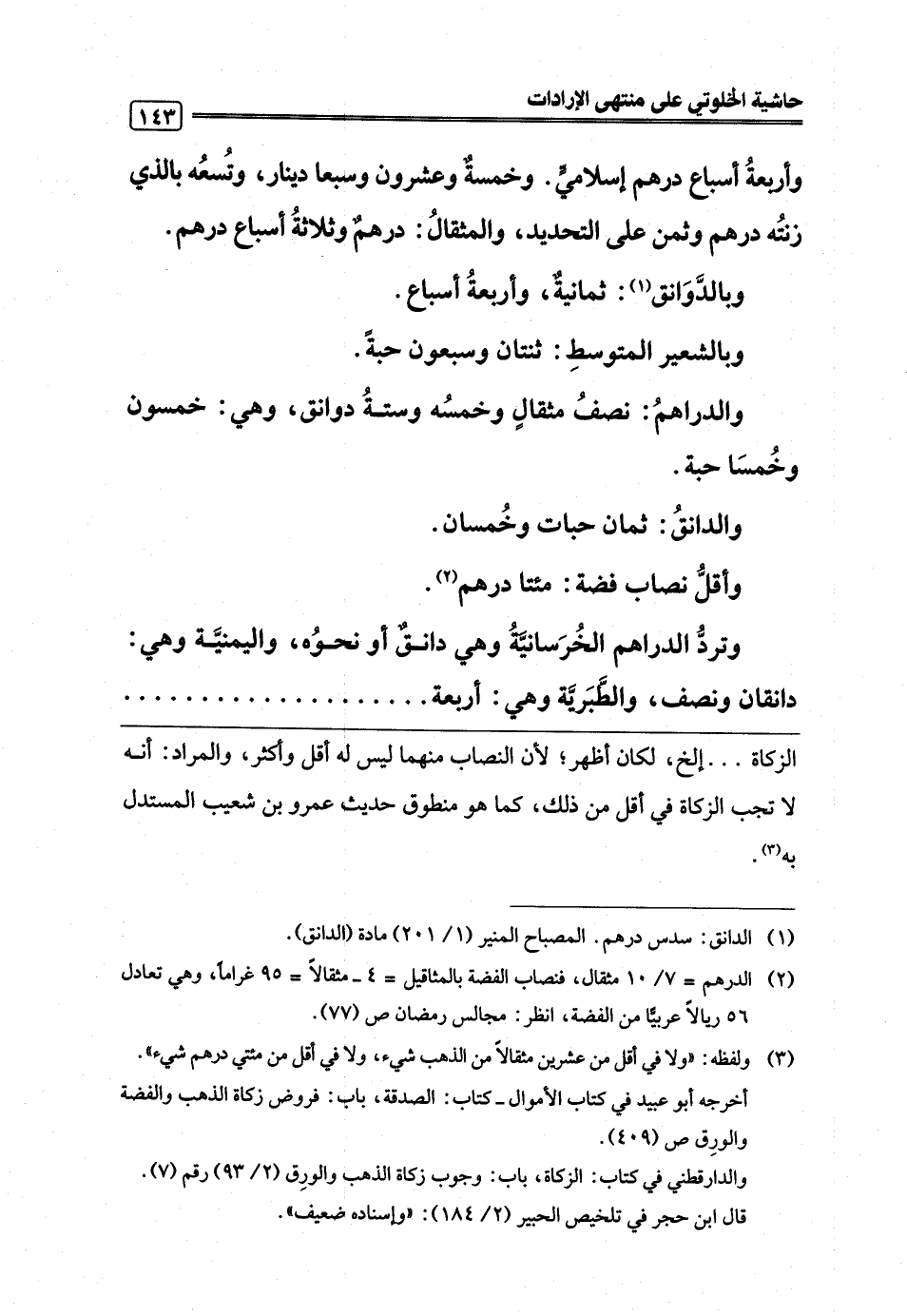 وتردُّ الدراهم الخُرَسانيَّةُ وهي دانقٌ أو نحوُه، واليمنيَّة وهي: دانقان ونصف، والطَّبَريَّة وهي: أربعة. . . . . .