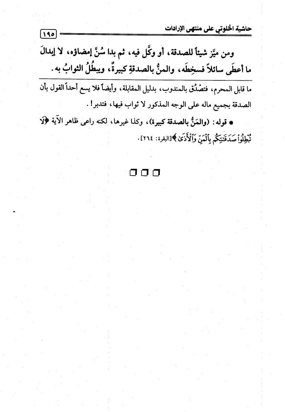 ومن ميَّز شيئًا للصدقة، أو وكَّل فيه، ثم بدا سُنَّ إمضاؤه، لا إبدالَ ما أعطَى سائلًا فسخِطَه، والمنُّ بالصدقةِ كبيرةٌ، ويبطُلُ الثوابُ به.
