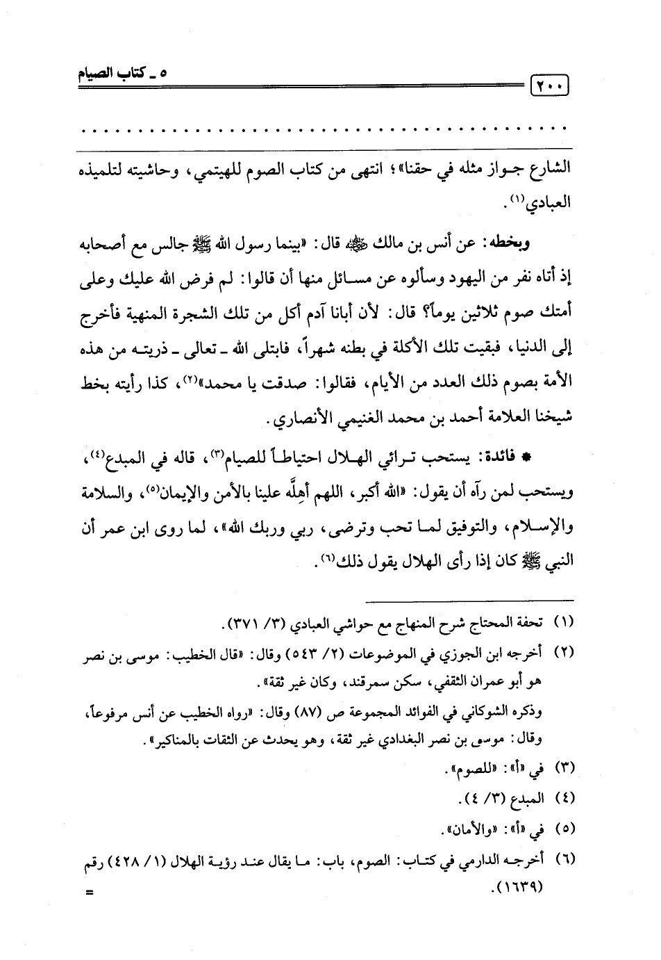 (¬6) أخرجه الدارمي في كتاب: الصوم، باب: ما يقال عند رؤية الهلال (1/ 428) رقم (1639). =