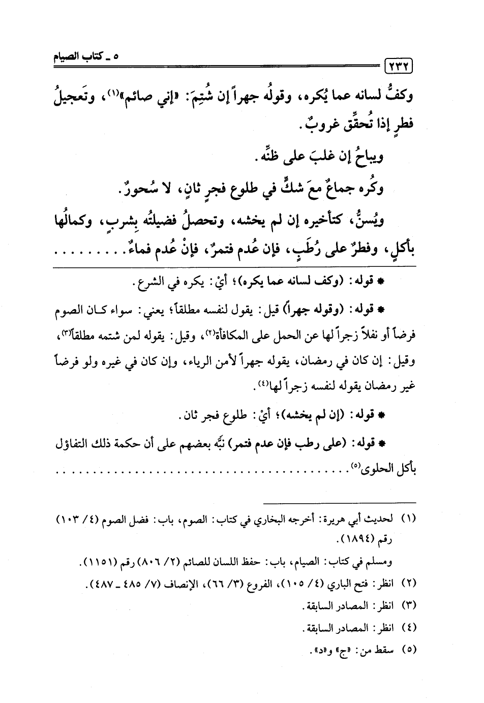 (¬2) انظر: فتح الباري (4/ 105)، الفروع (3/ 66)، الإنصاف (7/ 485 - 487).