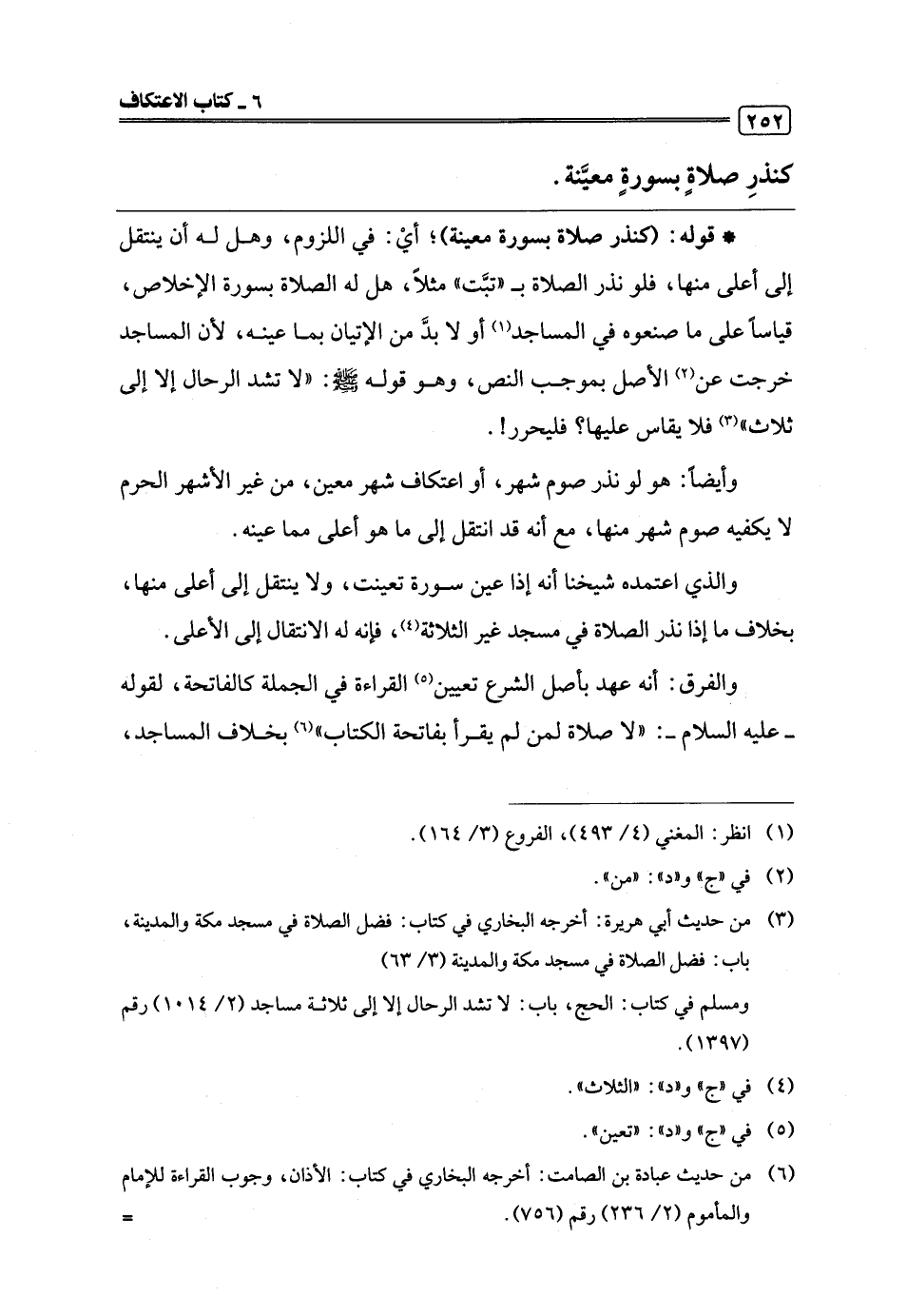 * قوله: (كنذر صلاة بسورة معينة)؛ أيْ: في اللزوم، وهل له أن ينتقل إلى أعلى منها، فلو نذر الصلاة بـ"تبَّت" مثلًا، هل له الصلاة بسورة الإخلاص، قياسًا على ما صنعوه في المساجد (¬1) أو لا بدَّ من الإتيان بما عينه، لأن المساجد خرجت عن (¬2) الأصل بموجب النص، وهو قوله -صلى اللَّه عليه وسلم-: "لا تشد الرحال إلا إلى ثلاث" (¬3) فلا يقاس عليها؟ فليحرر!.