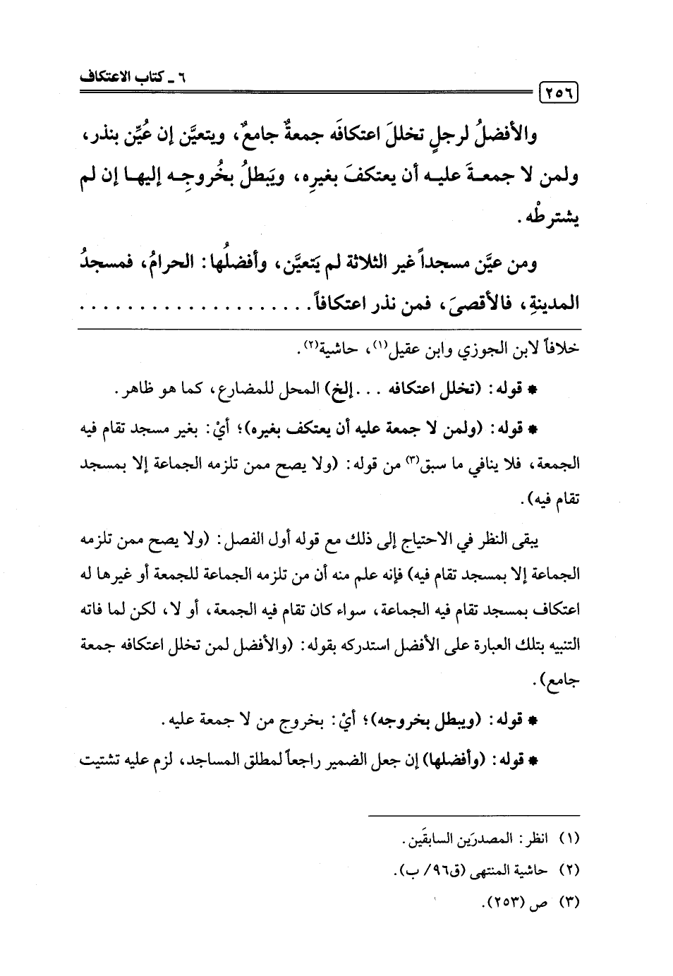 ومن عيَّن مسجدًا غير الثلاثة لم يَتعيَّن، وأفضلُها: الحرامُ، فمسجدُ المدينةِ، فالأقصىَ، فمن نذر اعتكافًا. . . . . .